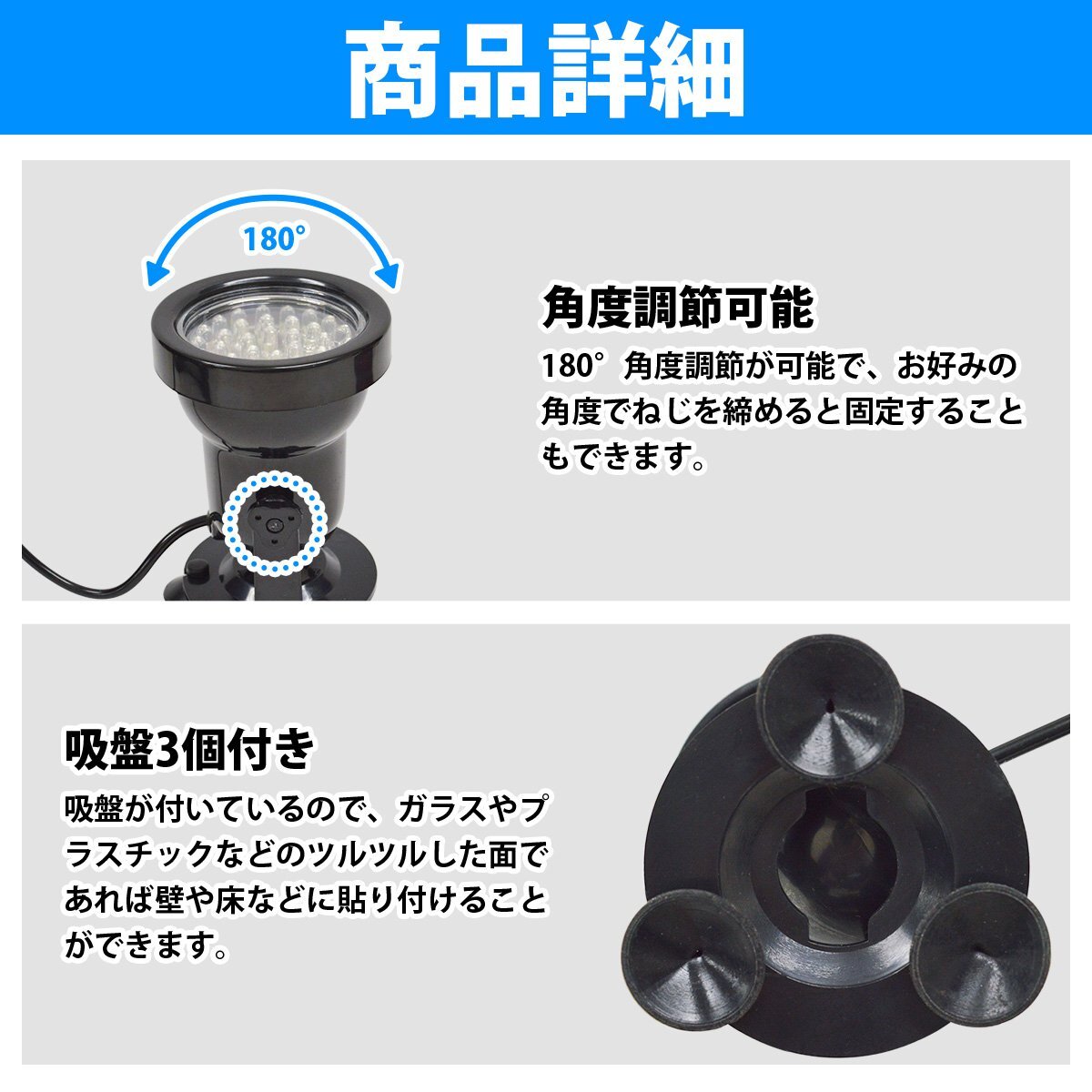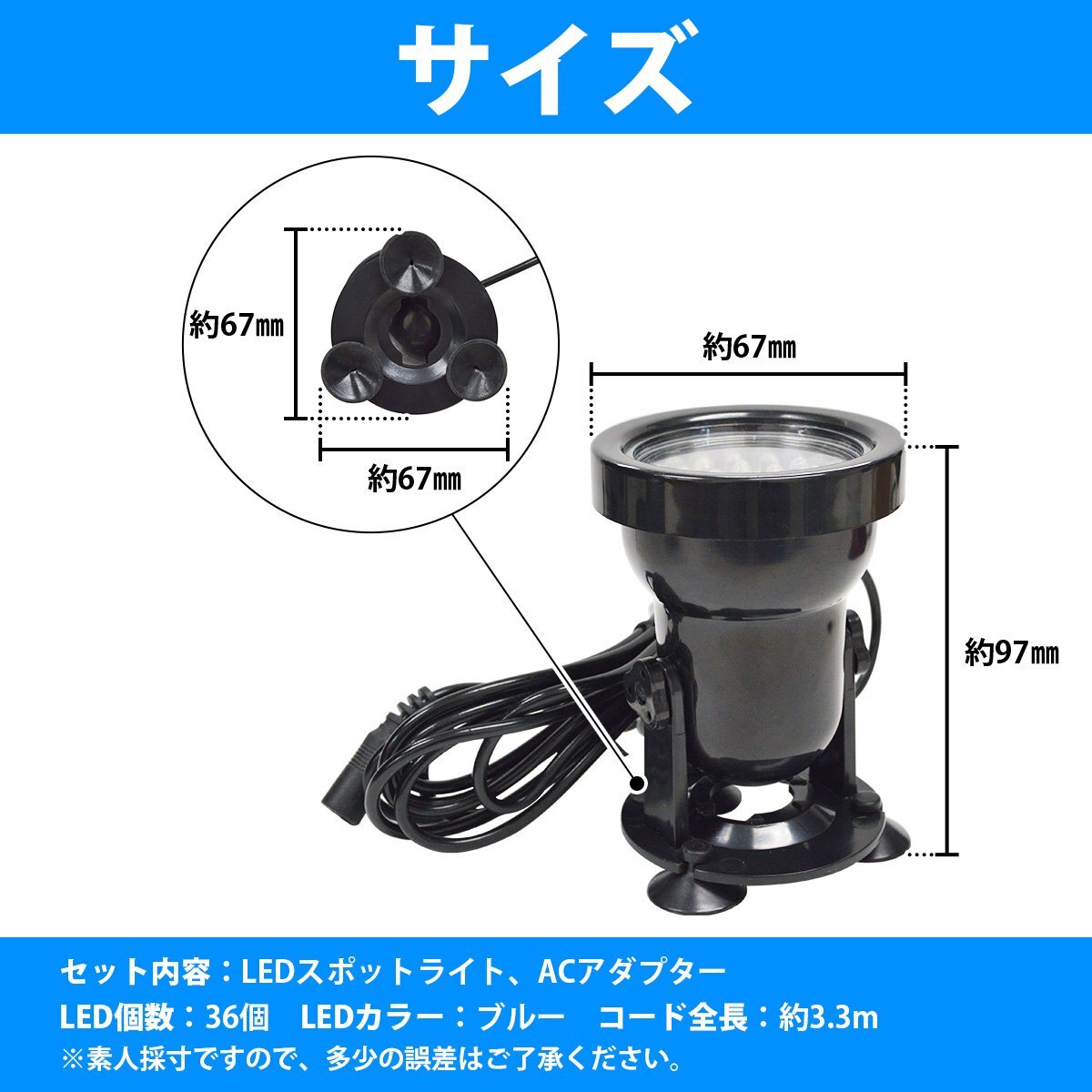 『青/ブルー 水槽 屋外』スポットライト 照明 36LED アクアリウム サンゴ 熱帯魚 LEDライト 吸盤貼り付け 180度 角度調整