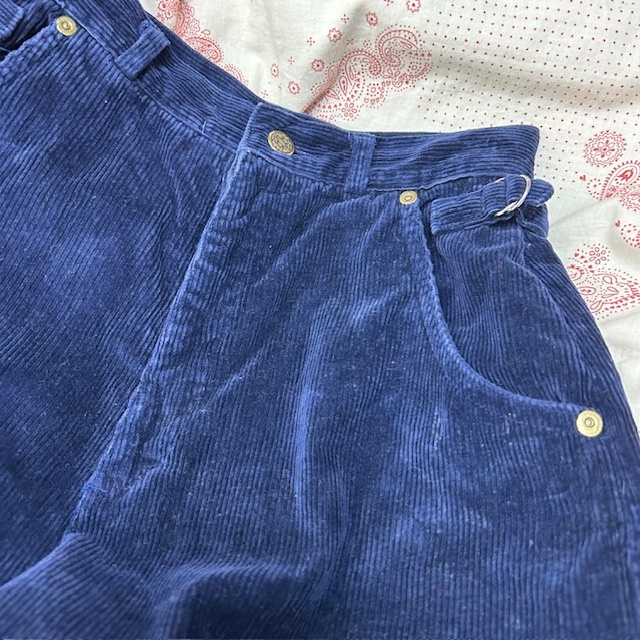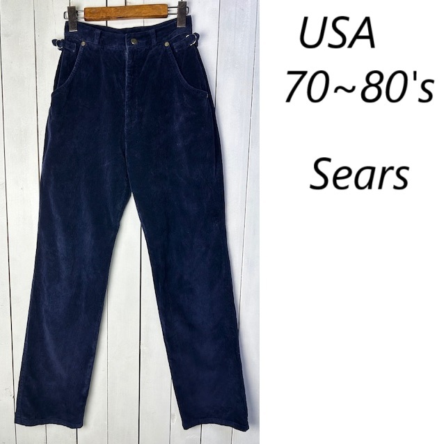 USA古着 70s80s Sears サイドベルト 太めコーデュロイパンツ 7 濃紺 42TALON オールド ヴィンテージ アメリカ シアーズ コーズ XS~S ハイウエスト ●53