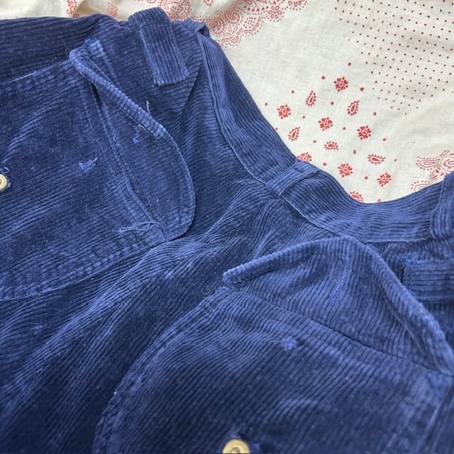 ●状態・・・USEDになりますが、丁寧に着られていた感じで、一定の着用感・バックポケットのボタン取れ(欠品)は見られますが、USEDの風合いで、目立つ汚れやダメージなどはなく、コーデュロイで見られがちな股部分もしっかりしており、USEDを着られる方でしたら問題なく着ていただける、風合いのある綺麗なほうの状態だと思います。