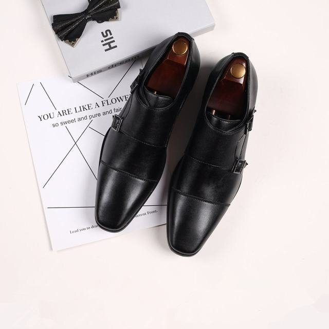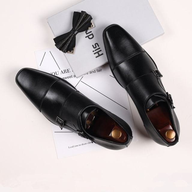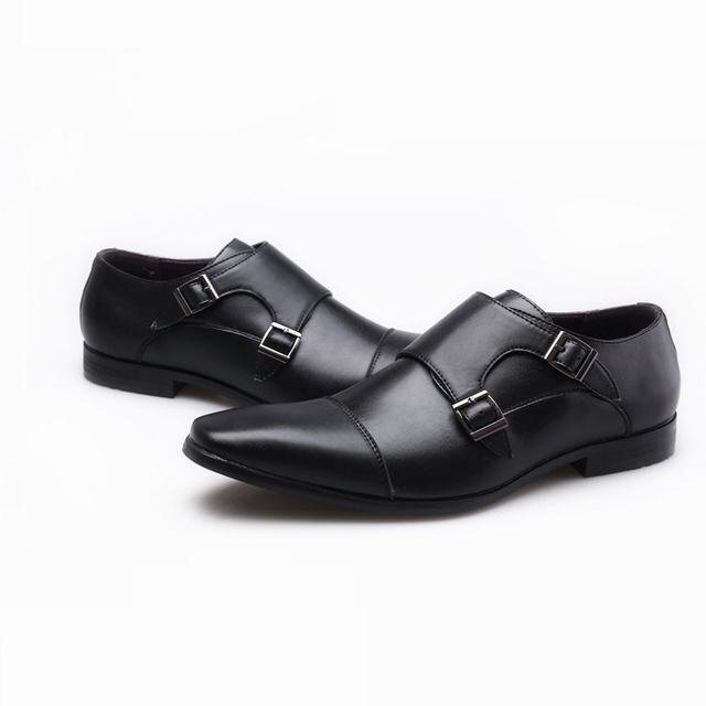 ビジネスシューズ メンズシューズ モンクストラップ  フォーマル PU革 革靴 就活 ロングノーズ 紳士靴  ブラック 26cm