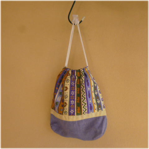 【入学、入園!】450円ラベンダープリントパッチワーク巾着袋 【手作り小物】