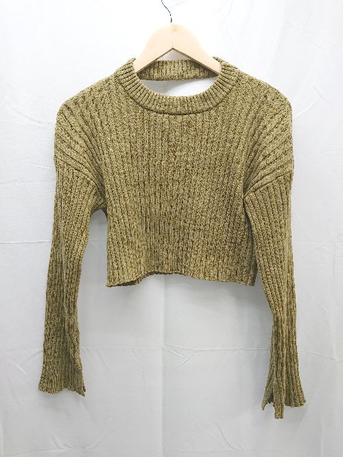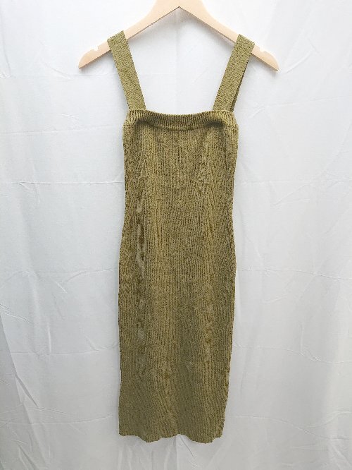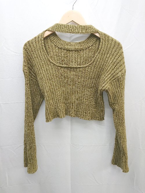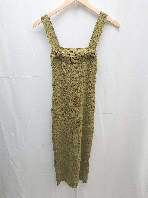 ◇ SPIRALGIRL リブ 背中開き タイト Iライン ワンピース ニット セーター サイズF グリーン レディース E