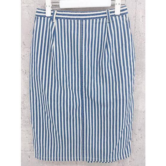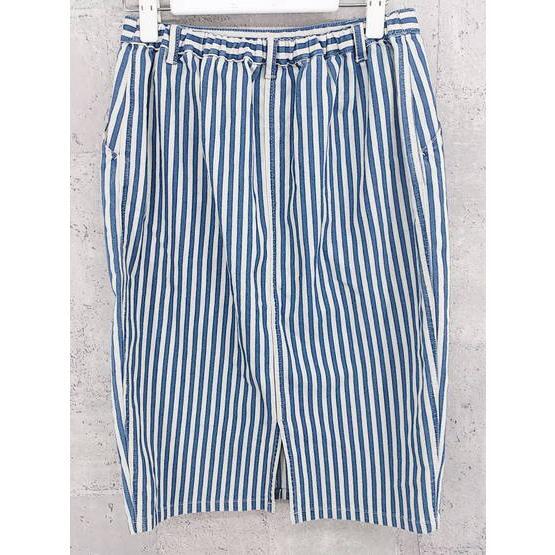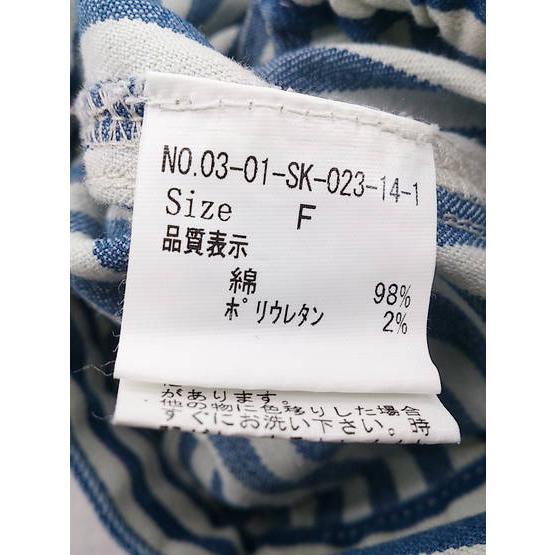 ◇ bulle de savon ビュルデサボン ウエストゴム ストライプ 膝下丈 タイト スカート F ブルー ホワイト レディース