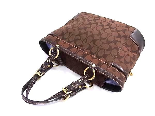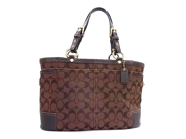 1円 COACH コーチ 11237 シグネチャー キャンバス×レザー ハンドバッグ トート 肩掛け レディース ブラウン系 BN6291