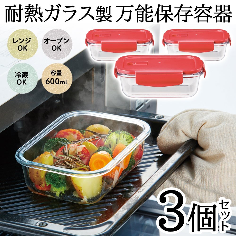 | 電子レンジ・オーブン対応 耐熱ガラス保存容器 3個セット | |