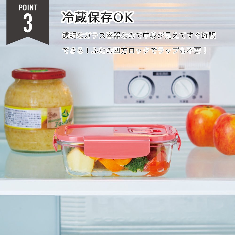 | ひとつで3役! つくる・たべる・しまうがこれひとつ 耐熱ガラス製のフタ付き保存容器 ★お得な3個セット★ | |