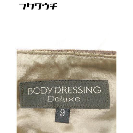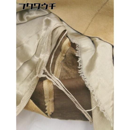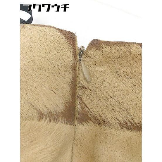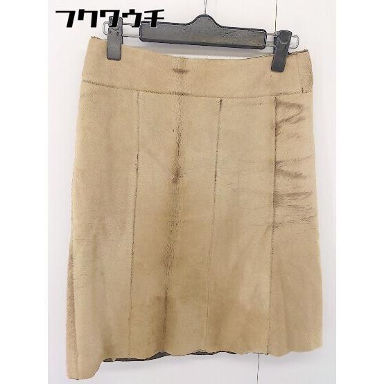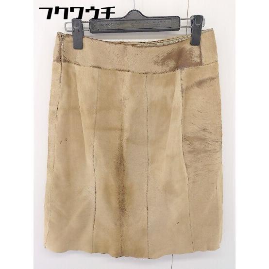 ◇ BODY DRESSING Deluxe 本革 リアルレザー ポニー 膝丈 タイト スカート サイズ9 ベージュ レディース