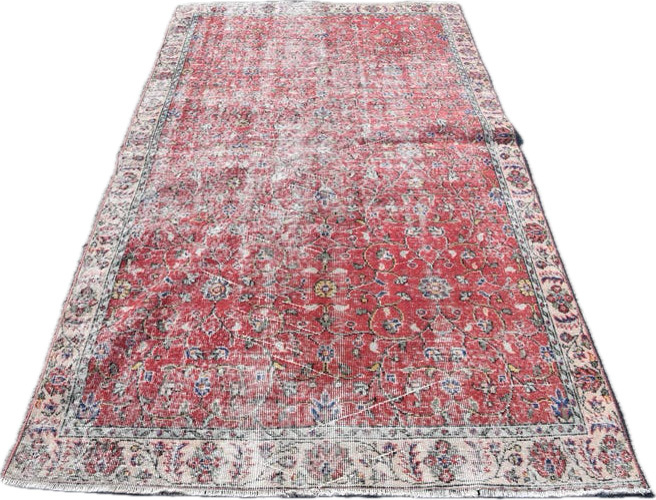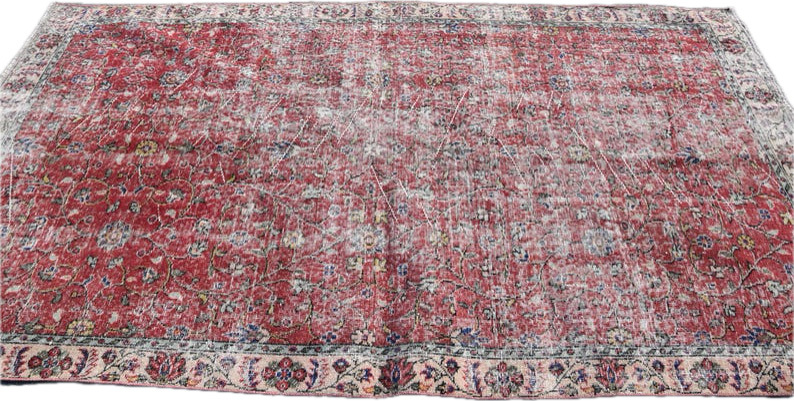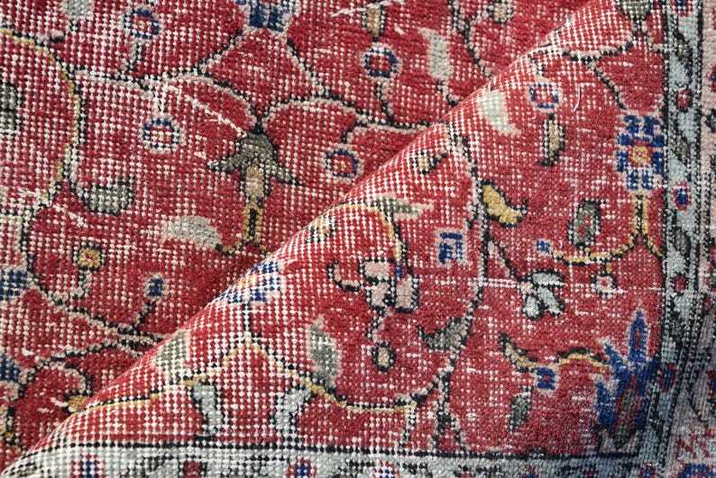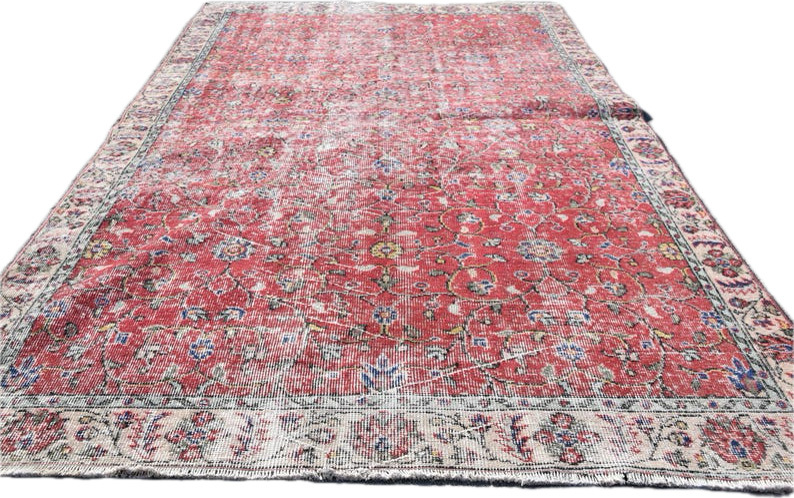 〇トルコのヴィンテージラグはシャビ―な雰囲気が修繕の跡や色落ちから得られることが特徴です。一品づつ色落ち具合も異なり、新品の状態とは異なりますので、ご留意ください。 糸を足すことによる修繕、強化の跡やほつれや糸が出ている箇所が見られることがありますが、元々頑丈な手織りですのでご使用に際しての支障が出るものではございません。