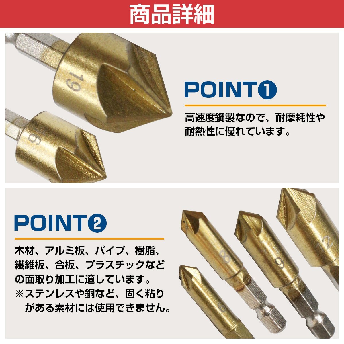 商 品 説 明面取りカッターとは、電動ドライバーなどに取り付けて、穴あけ後の面取り・バリ取り・