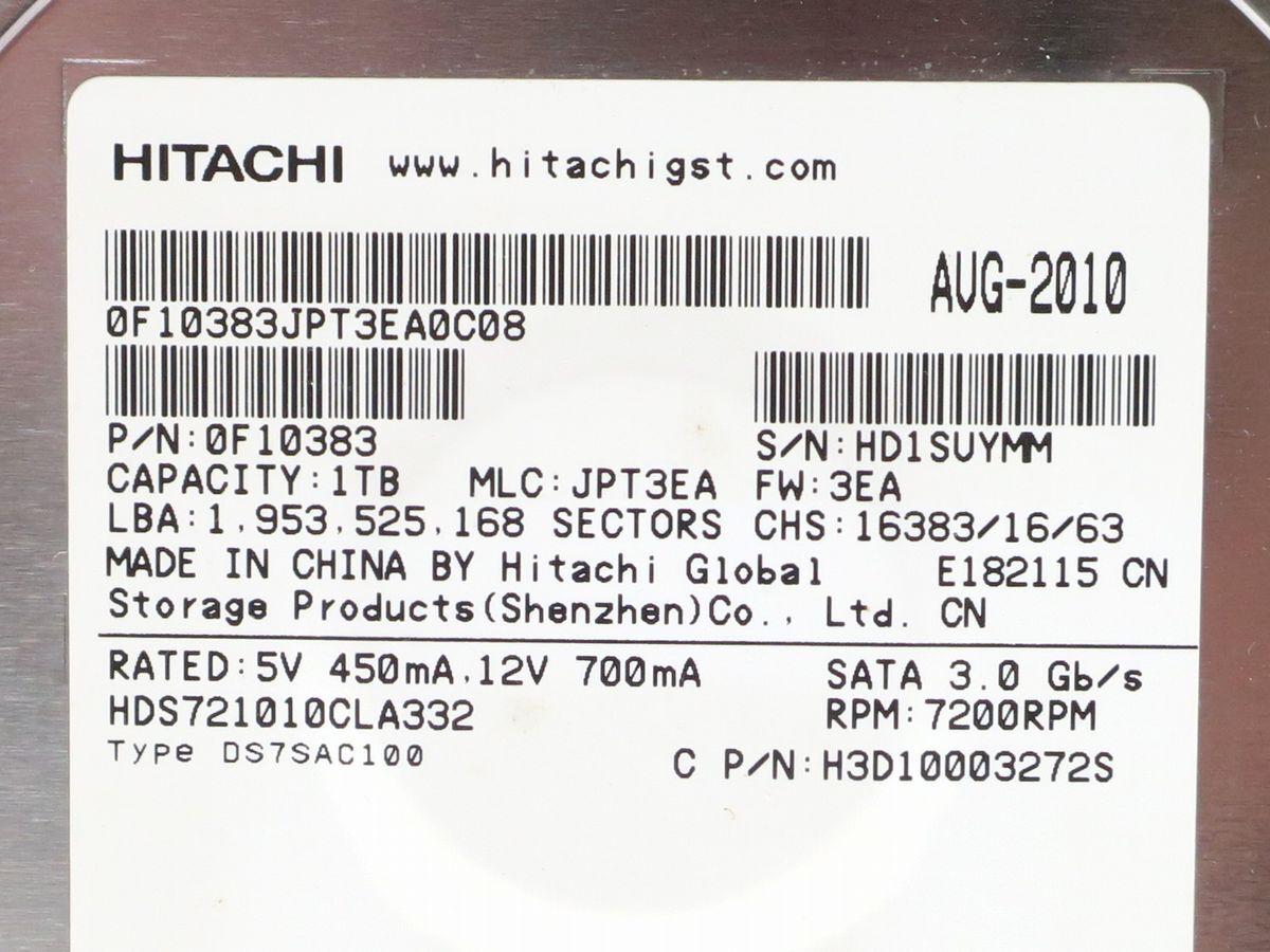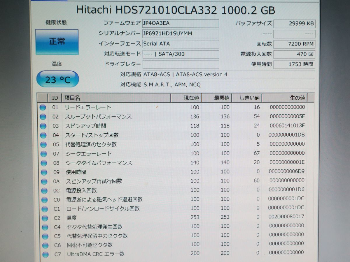 | 【DATA】 製品名:Deskstar 7K1000.C HDS721010CLA332 メーカー:日立グローバルストレージテクノロジーズ 容量:1TB 回転数:7200 rpm インターフェイス:Serial ATA 3.5インチ 日立のHDDです。容量は1TBあります。 十一月まで使用していたので動作に問題はないはずです。 出品に際してはS.M.A.R.T情報を表示して 健康状態「正常」などの記載を確認致しました。(画像四枚目参照) |