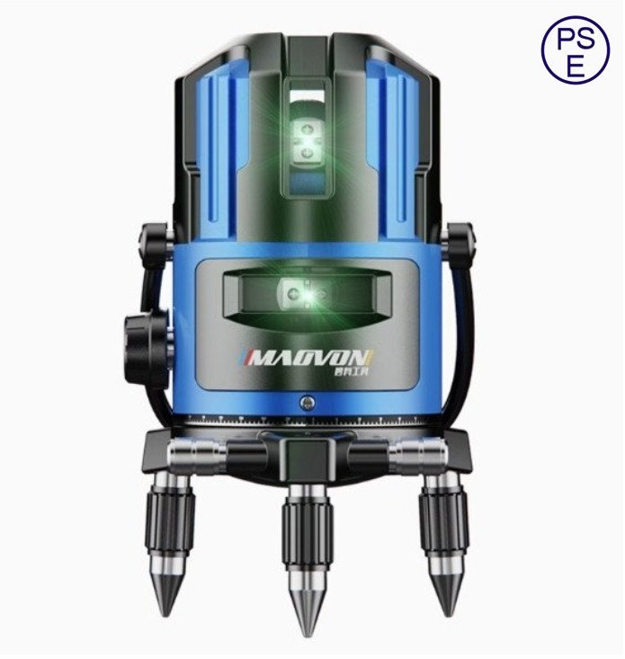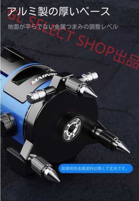 【自動水平補正と傾斜感知機能 】 本体が3°以内の傾斜であれば、自動で補正し水平を維持します。また、3°以上の傾斜はアラームが鳴り、レーザーラインが点滅して使用者に知らせます。360度の三脚シャーシを回転させて、線の位置は任意で調整することができます。誤差を減らし、また本体下部には三脚用のアダプターがついています。