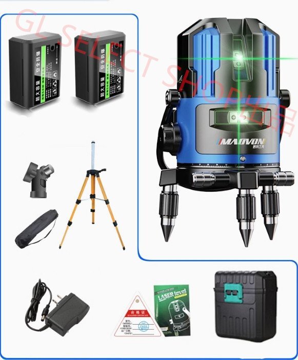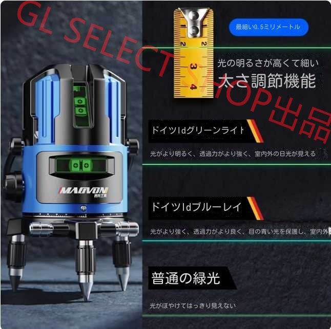 5ライン6点 グリーンレーザー墨出し器/墨出器/墨出し機/測定器/水準器/水平器/自動補正機能/ 高輝度 /高精度/1.0M三脚付き二つの電池です