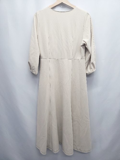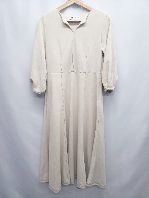 ◇ Θ 179/WG NICOLE CLUB 配色ステッチ 長袖 膝下丈 ワンピース サイズ38 ベージュ系 レディース E