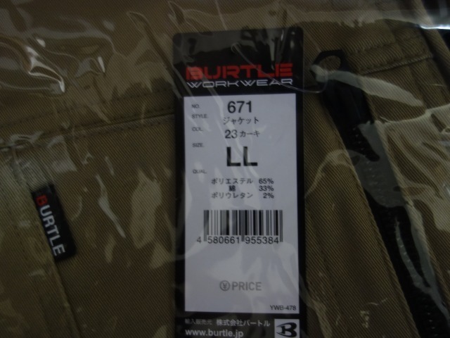 バートル 671★LL カーキ★ストレッチツイル ジャケット★BURTLE