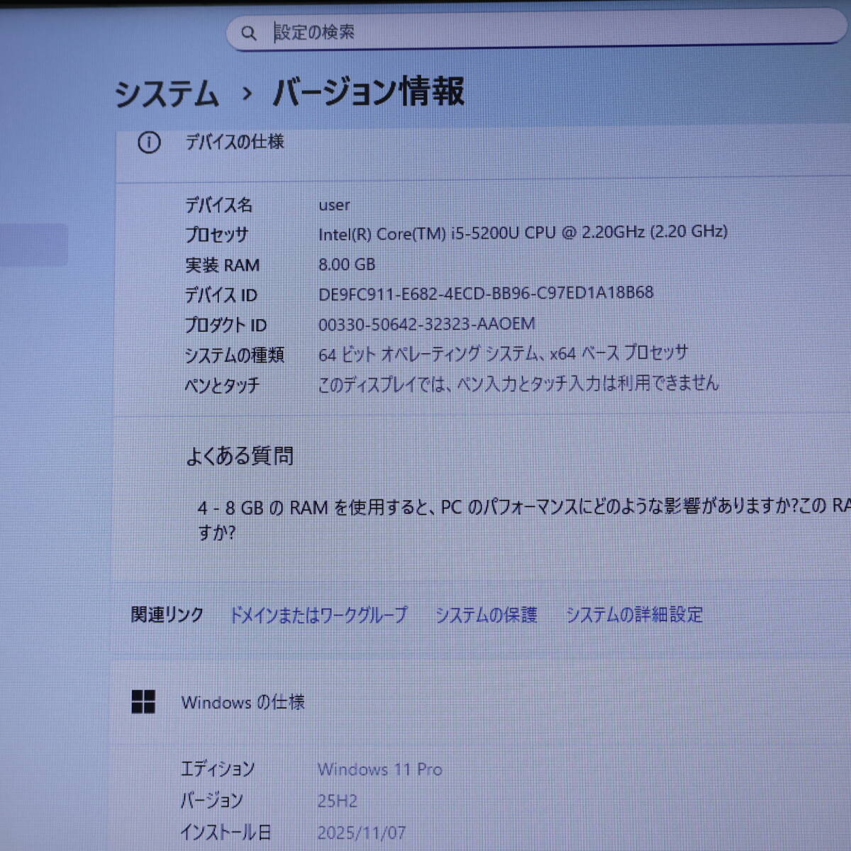 ★現状品 高性能5世代i5!大容量750GB メモリ8GB★VK22T Core i5-5200U Webカメラ Win11 MS Office 中古品 ノートパソコン★P92039