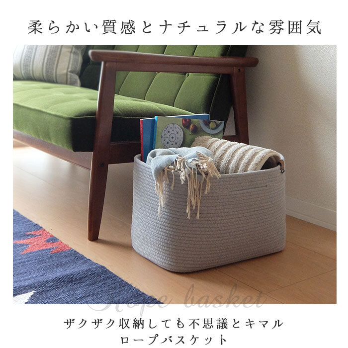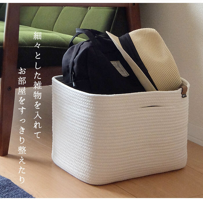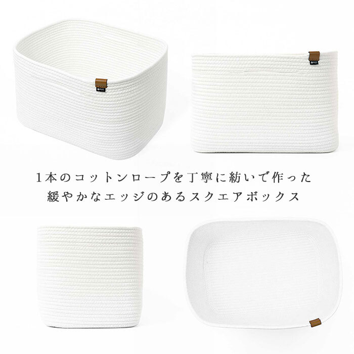| 商品説明 | ・1本のコットンロープを丁寧に紡いで形づくられた曲線のラインが優しい、モダンクラシカルな「rope square box」が発売。 ・緩やかなエッジのあるスクエアボックス。ブラウンの本革のタグがアクセントになって、インテリアに上品で優しい印象をプラス。 ・タオルや衣類を置くサニタリーバスケット、お子様用のトイバスケットなど、使い方は自分次第! ・シェルフやカラーボックスにもフィットするサイズ感で、複数使いもおすすめ。 ・ソファ横などに置いてブランケットを入れておく等、カフェ風スタイルを楽しむこともできるアイテム♪ ・コットンロープを重ね合わせて作られた優しい肌触りのバスケットだから、物や床に傷を付ける心配なく使えるのがうれしい。 |