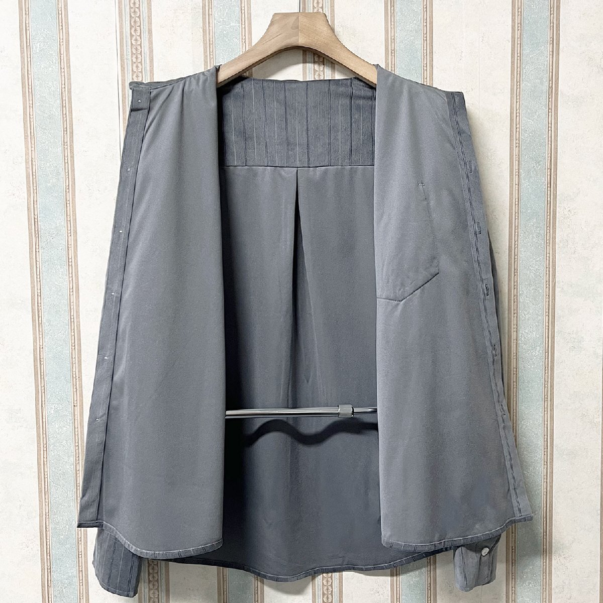 高級 定価4万 FRANKLIN MUSK・アメリカ・ニューヨーク発 長袖 シャツ 柔らか 折り襟 ストライプ柄 開襟 カジュアル 通学 通勤 春秋 サイズ1