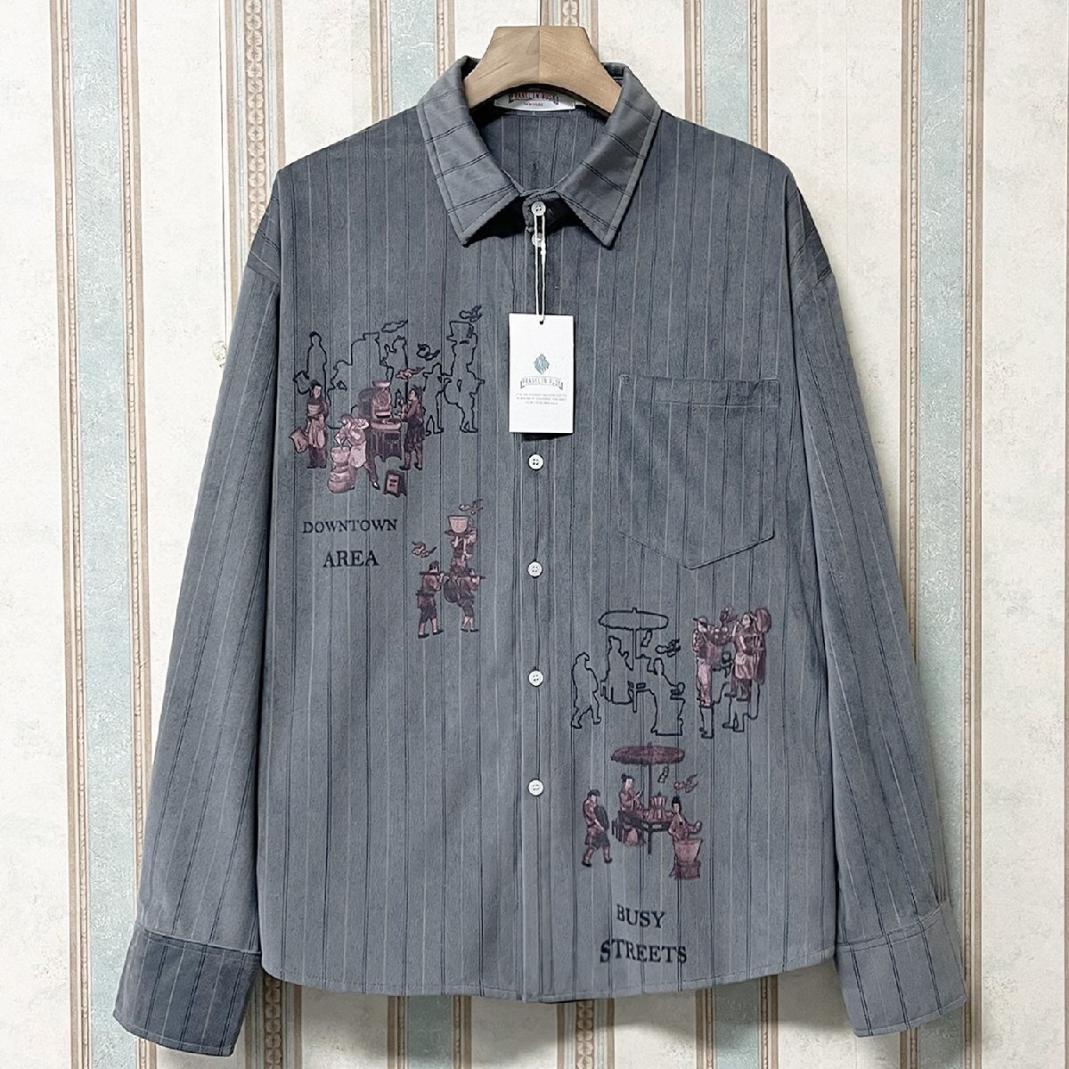 全体にあしらわれた繊細なストライプ柄が、上品かつスタイリッシュな印象を演出。フロント部分には印象的なプリントが施されており、シンプルながらも個性を引き立てます。左胸には実用的なポケットを配置しており、デザインのアクセントとしても機能性としても優れています。フロントはボタンを配置して、開けても閉めてもスタイリッシュに影響なく、自分の好みより調整できます。