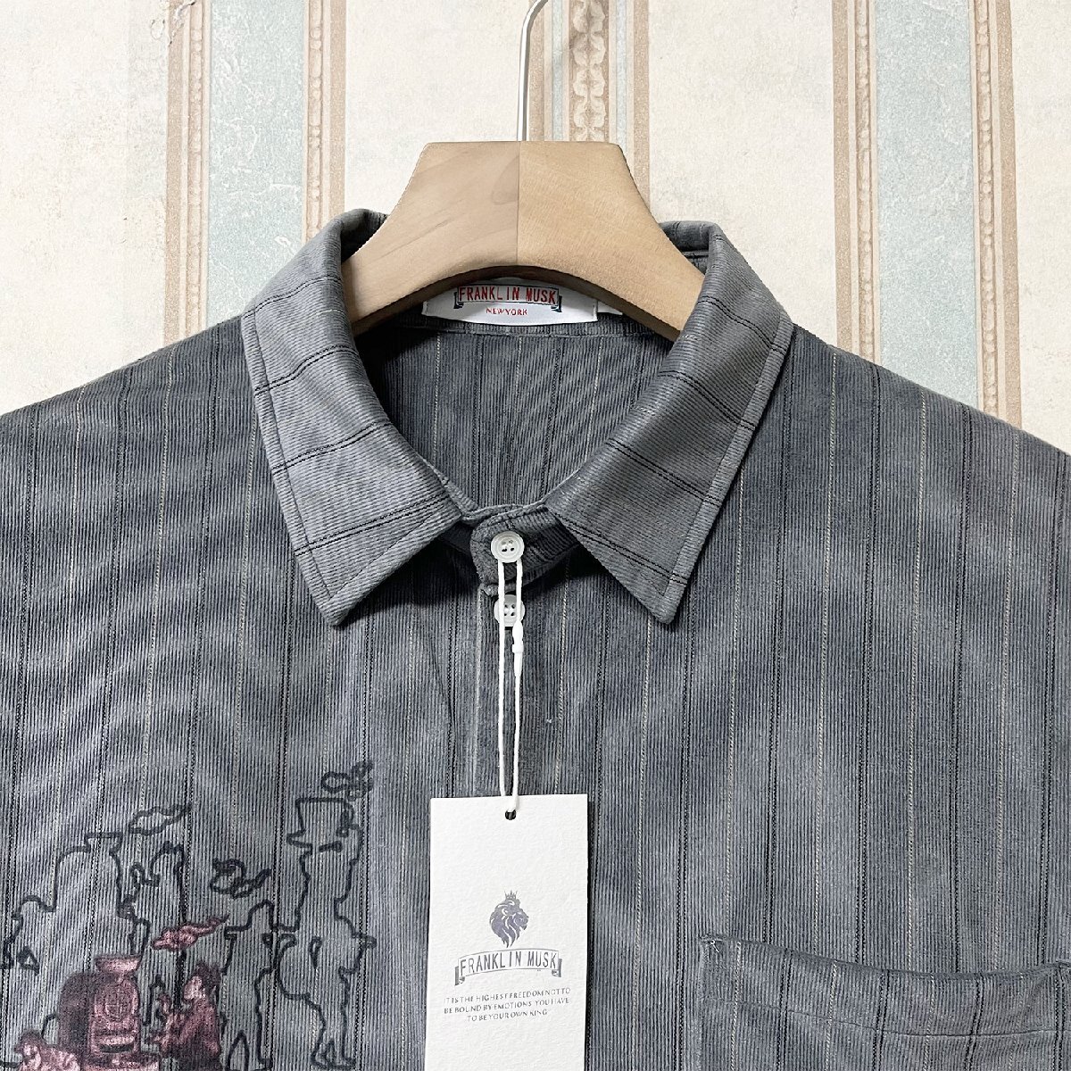 高級 定価4万 FRANKLIN MUSK・アメリカ・ニューヨーク発 長袖 シャツ 柔らか 折り襟 ストライプ柄 開襟 カジュアル 通学 通勤 日常着 春秋 サイズ1
