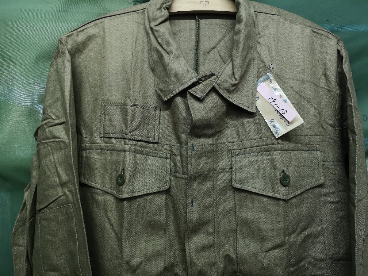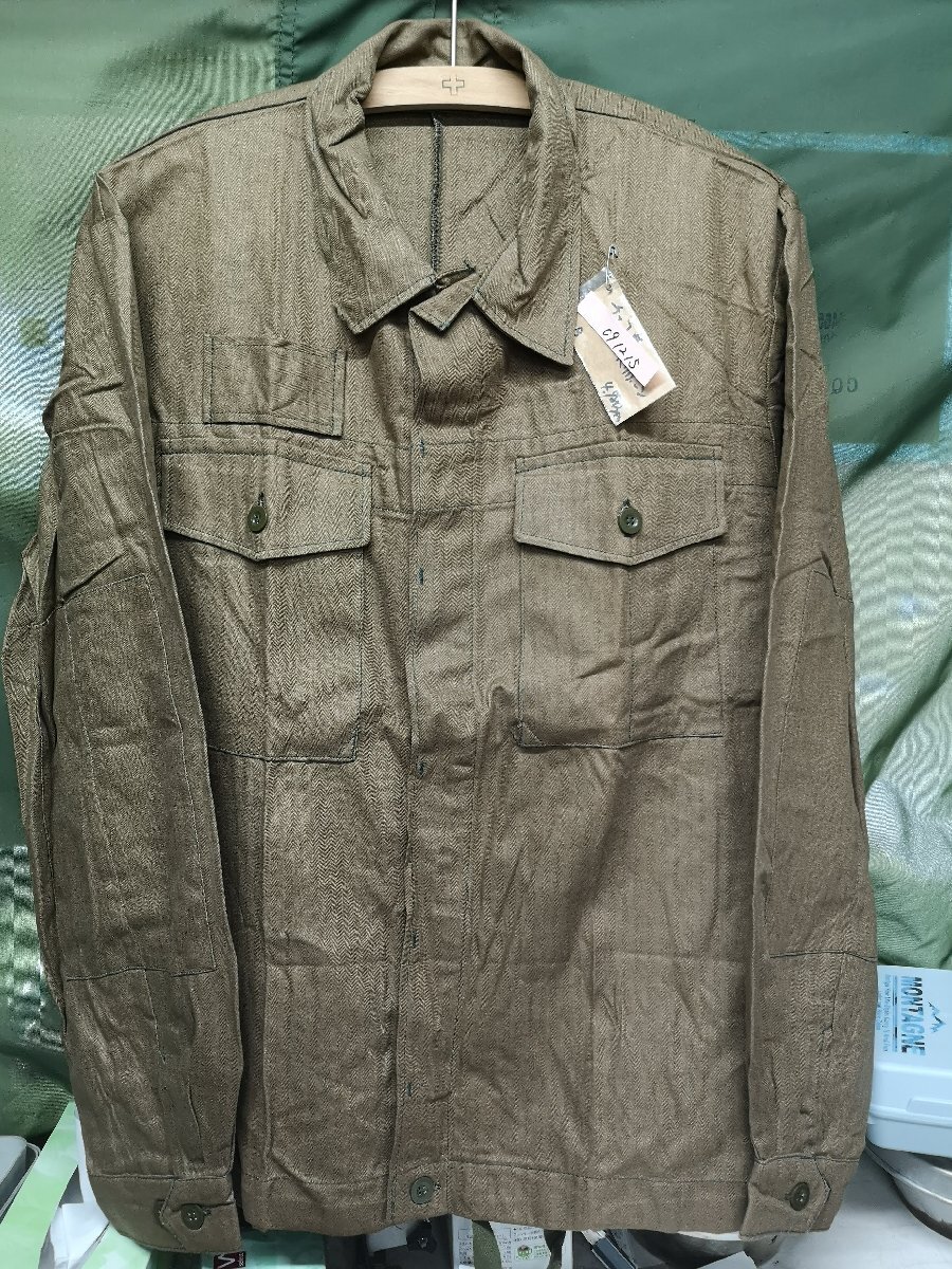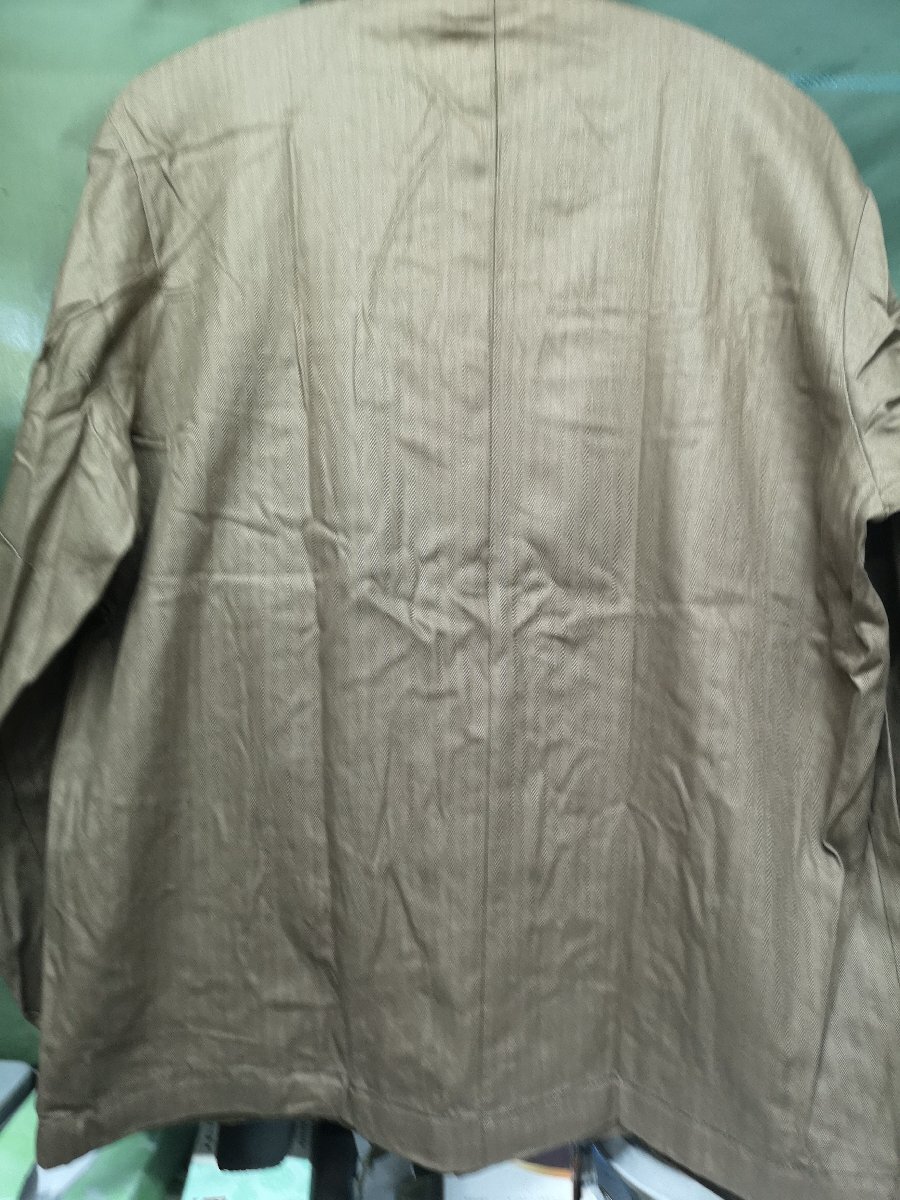 チェコ軍ユーティリティーワークジャケットです。 フロント部分にポケットが2つ付きます。未使用品ですが日焼けなどあります写真でご確認ください。 デザインに個体差があるもののそれぞれに魅力的があり、合わせやすい落ち着いたカラーにまとまっています。 薄手のコットン地が使用されアウターやインナーにも使えるので、オールシーズン着用が可能です。 素材:コットンヘリボーン サイズ表示は2B 着丈が73cm程度、身幅が67cm程度、肩幅52cm程度、袖67センチ程度です。 沖縄離島を除く全国500円でお送りいたします、落札価格にプラスでお願いいたします。