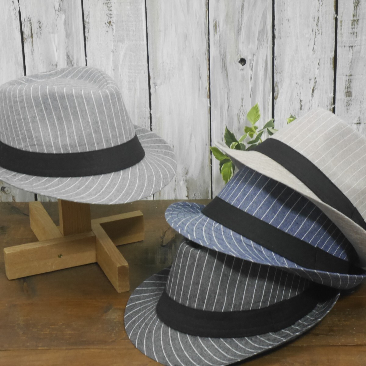 全国一律送料450円 フェドラハット ストライプ シンプル グレー オールシーズンOK 男女OK ボルサリーノ パナマ 中折れ