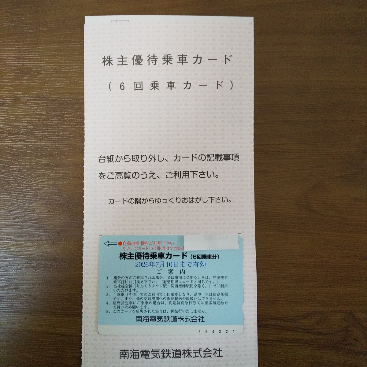 最新の南海鉄道株主優待乗車カード(6回分)1枚です。