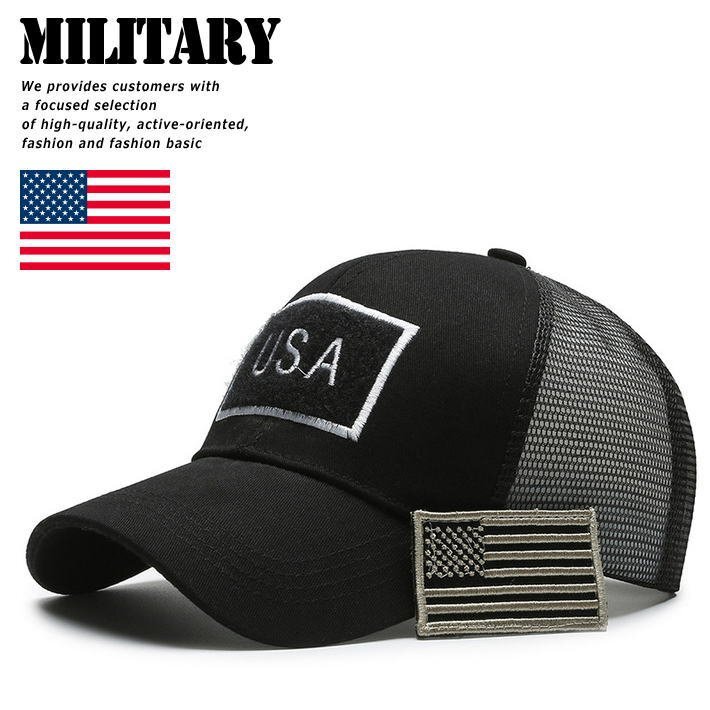 USA Military メッシュキャップ 帽子 野球帽 アウトドア メンズ レディース サバゲー キャンプ 野球 7987173 ブラック×ホワイト 新品