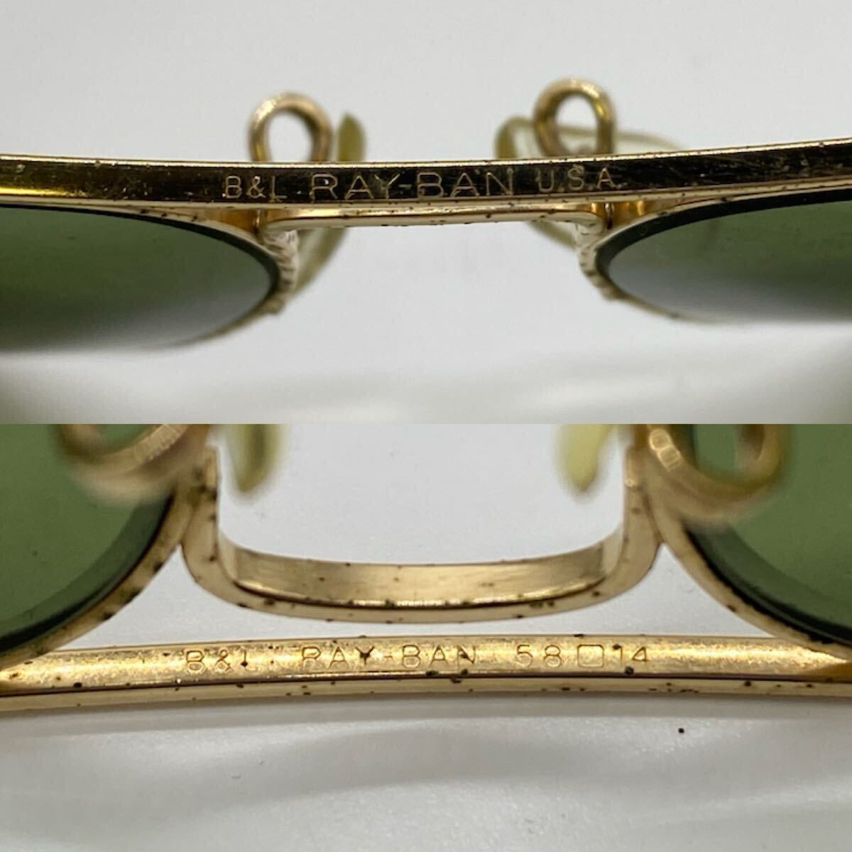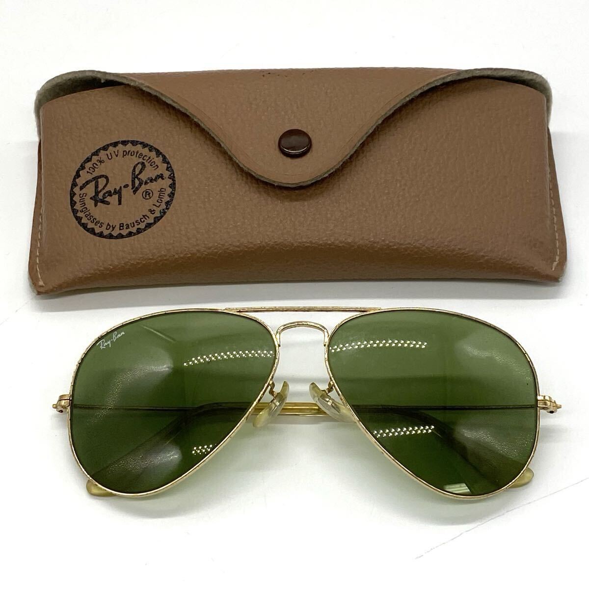 【11A71】1円スタート Ray-Ban RayBan 5814 レイバン B&L U.S.A. ゴールド グリーン サングラス 眼鏡 メガネ ヴィンテージ ケース付き