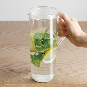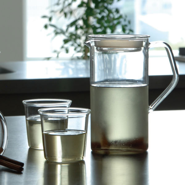 日常の暮らしの中で、変わりゆく時の流れにも溶け込んでゆく使う人の動作を美しく見せる、ロングライフデザイン CAST。 本を読みながら、会話をたのしみながら。飲むという行為にはいつも、もうひとつの豊かな時間が重ねられています。その自然な体の動きを妨げないデザイン。手に負担がかからないよう、重力や力点を考慮したハンドルの角度。唇を軽くあてただけでドリンクが口先にすっと注がれる、わずかに外側に広がった口部。いくつもの機能性を兼ね備えたシンプルで品格のあるプロダクトなのです。サイズ:直径90 x H238 x W142 mm / 1.2 L素材:耐熱ガラス、シリコーン食器洗浄・乾燥機OK キントー KINTO CAST ウォータージャグ 水差し 1.2L 21677 バレンタイン 卒業式 新生活 おしゃれ かわいい キャスト ガラス 大容量 ウォーターカラフェ ウォーターボトル ピッチャー スリム シンプル 容器 麦茶ポット 冷水ポット 食洗機対応 冷水筒 コーヒー キャニスター ギフト 誕生日プレゼント 女友達 結婚祝い ギフトセット 出産 送別 の 品 贈り物 内祝 お返し