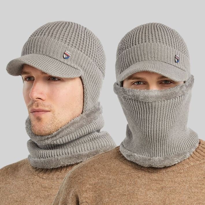 裏ボア ニット帽 ニットキャップ マフラー ネックウォーマ 耳あて メンズ レディース つば付き 帽子 7987619 チャコール 新品 1円 スタート