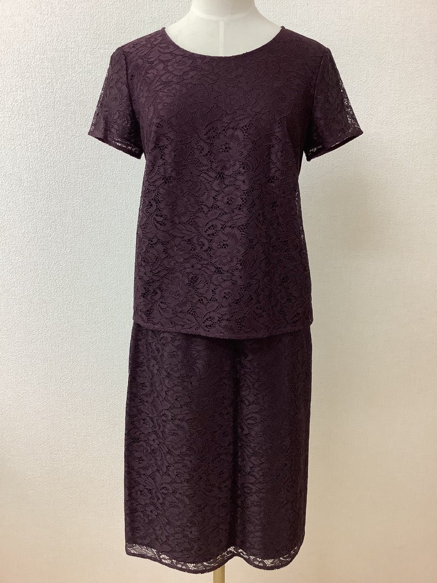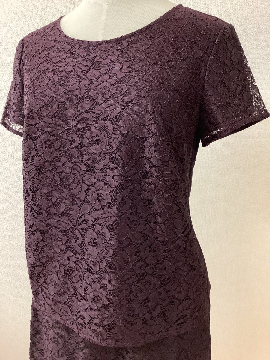 | 管理番号:10^135576 クードシャンス タグ付き未使用 赤茶色 レースセットアップ 表示サイズ:トップスM スカートL 実寸(参考)