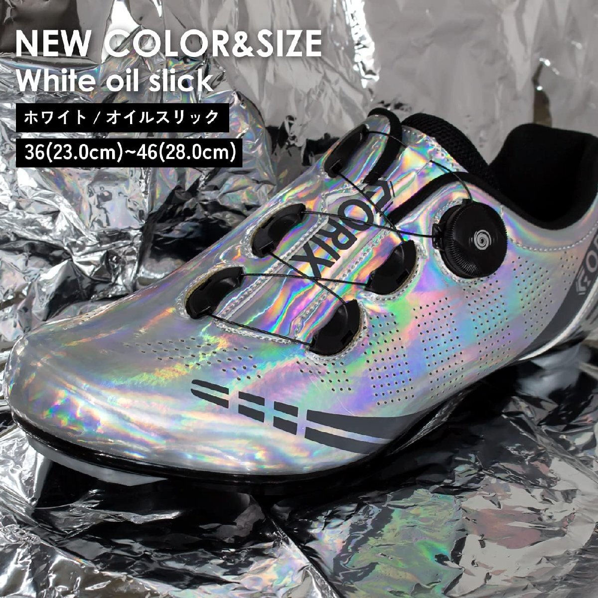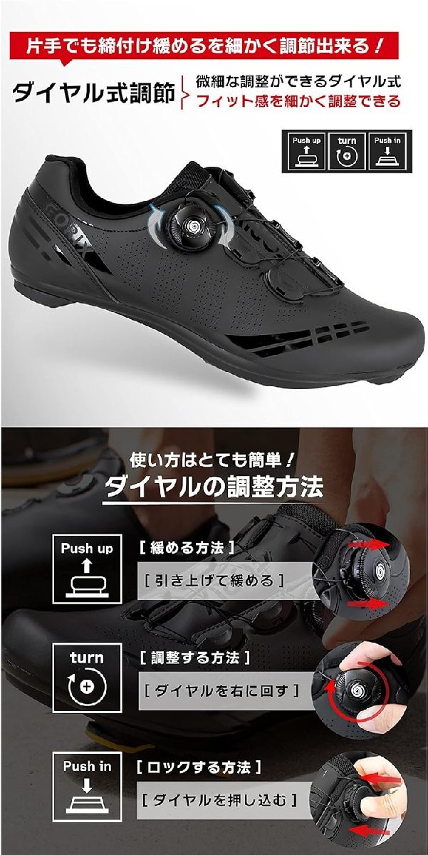 3タイプのビンディング用クリート対応の自転車サイクルシューズ 3穴タイプのロードバイクや2穴タイプのMTBクリートに対応します。 シマノSPD/SPD-SL対応、LOOK Keo対応に互換性あり。 [優れた通気性] 通気穴から熱を外に逃がします。熱が籠りにくく快適に。 [ダイヤル式調整] 微細な調整ができるダイヤル式は細かくフィット感を調整できます。 片手でも締付け、緩めるができる! 使い方もとても簡単です。 ビンディング用クリートはロード向け、MTB使用可能 (3穴タイプ)ロードバイク向けクリート。 (2穴タイプ)MTB向けクリートに対応。 [ソール] 4カ所の通気口、インソールにも通気性を。 空気を流し涼しく快適に。 耐久性の高いソールです。 またソールにラバーが2カ所あり歩きやすい。 ※ノークレーム、ノーリターン | |