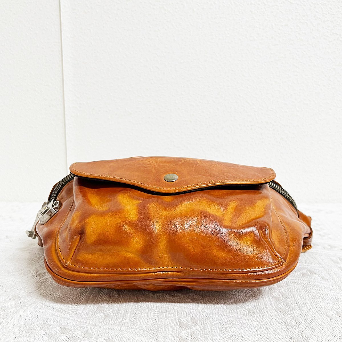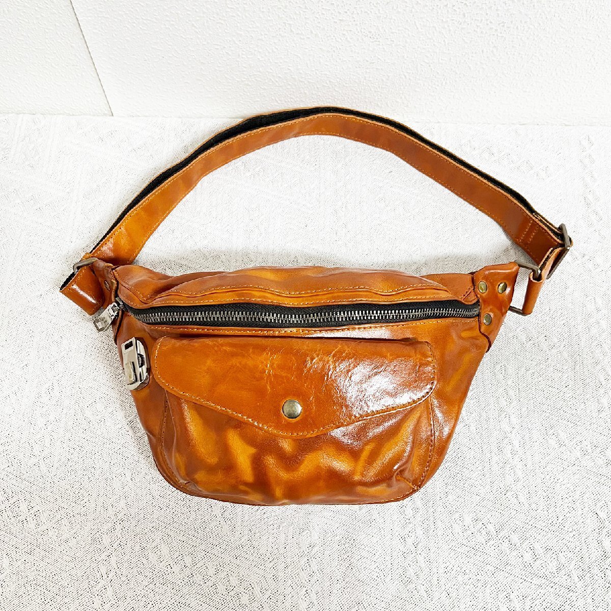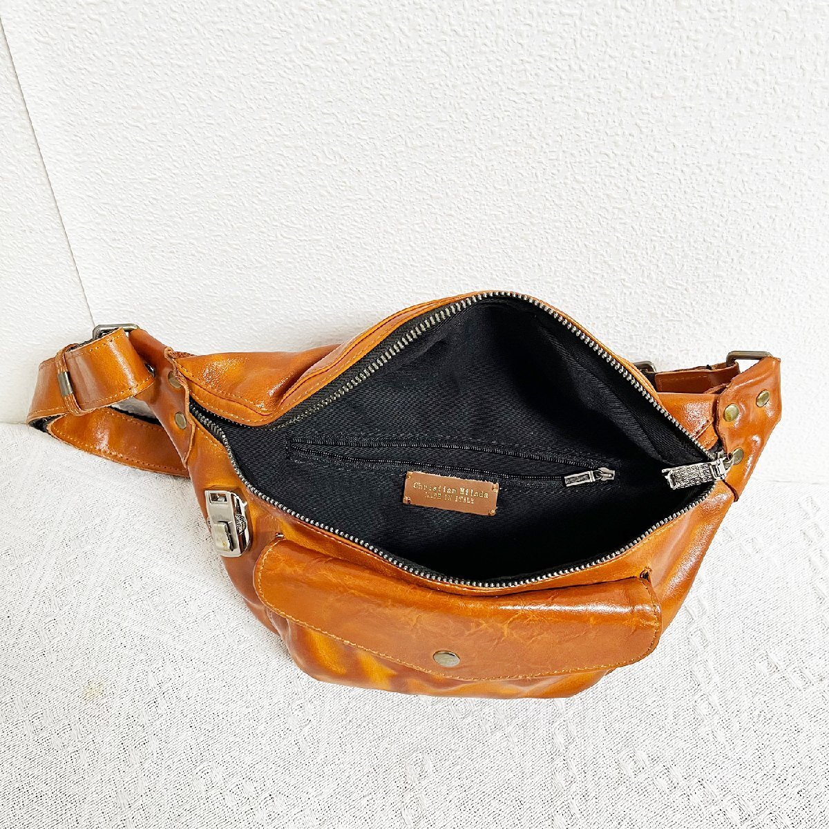 定番EU製 定価11万★christian milada・ミラノ発・ウエストバッグ★牛革 本革 光沢感 撥水 レトロ ボディバッグ ショルダーバッグ 日常