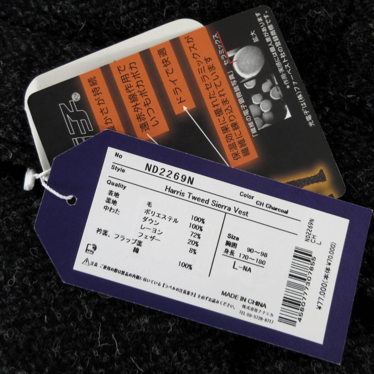 定7.7万 新品◆THE NORTH FACE PURPLE LABEL◆保温 ハリス ツイード シエラ ベスト L チャコール◆ノースフェイス 光電子ダウン◆J735