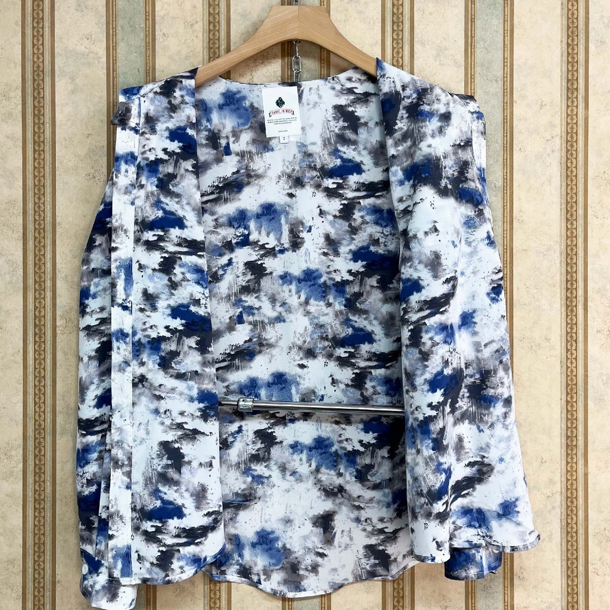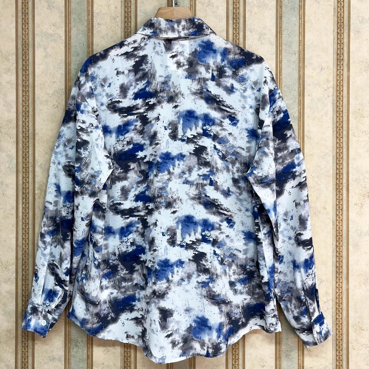 個性 定価4万 FRANKLIN MUSK・アメリカ・ニューヨーク発 長袖 シャツ シルク混 ソフト 薄手 総柄 折り襟 トップス アロハシャツ カジュアル 秋 サイズ2