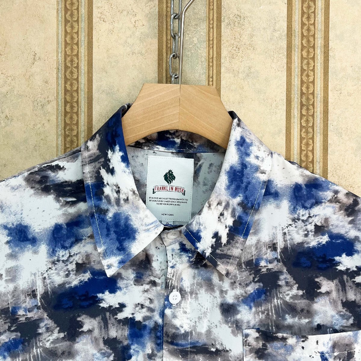 個性 定価4万 FRANKLIN MUSK・アメリカ・ニューヨーク発 長袖 シャツ シルク混 ソフト 折り襟 トップス アロハシャツ カジュアル 秋サイズ2