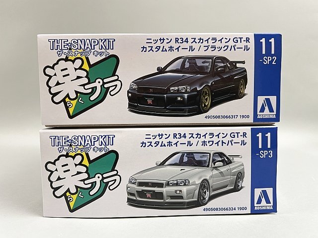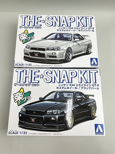 ●★ アオシマ 1/32 ザ・スナップキット ニッサン R34 スカイラインGT-R カスタムホイール ブラックパール / ホワイトパール プラモデル 2点セット ●