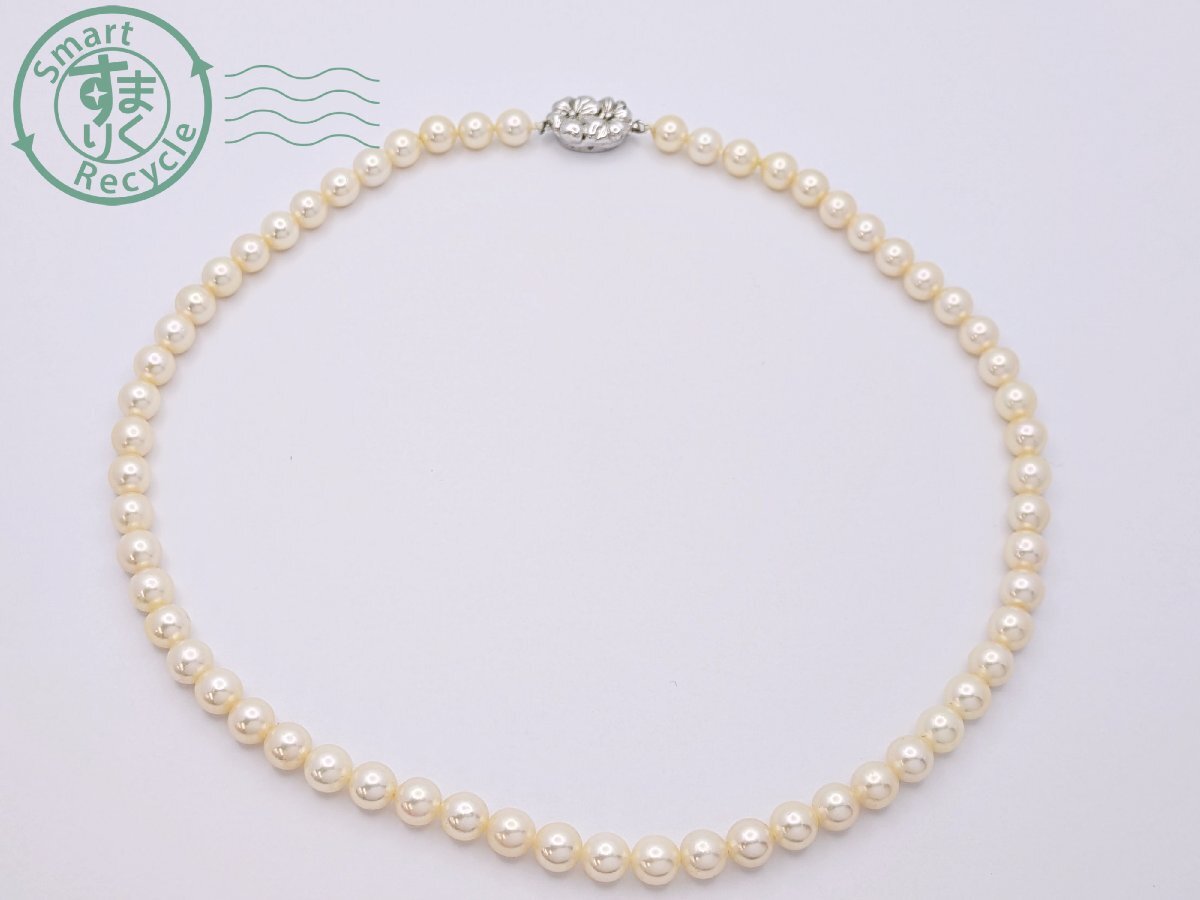 ★ パール 真珠 約6.4~6.9mm程度 全長約44.5㎝ ネックレス 留め具 SILVER PAT PENDING 刻印 ジュエリー アクセサリー 中古 | |||