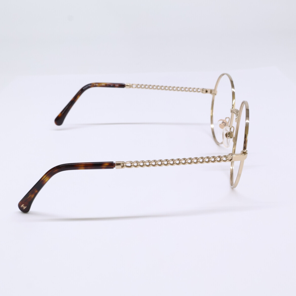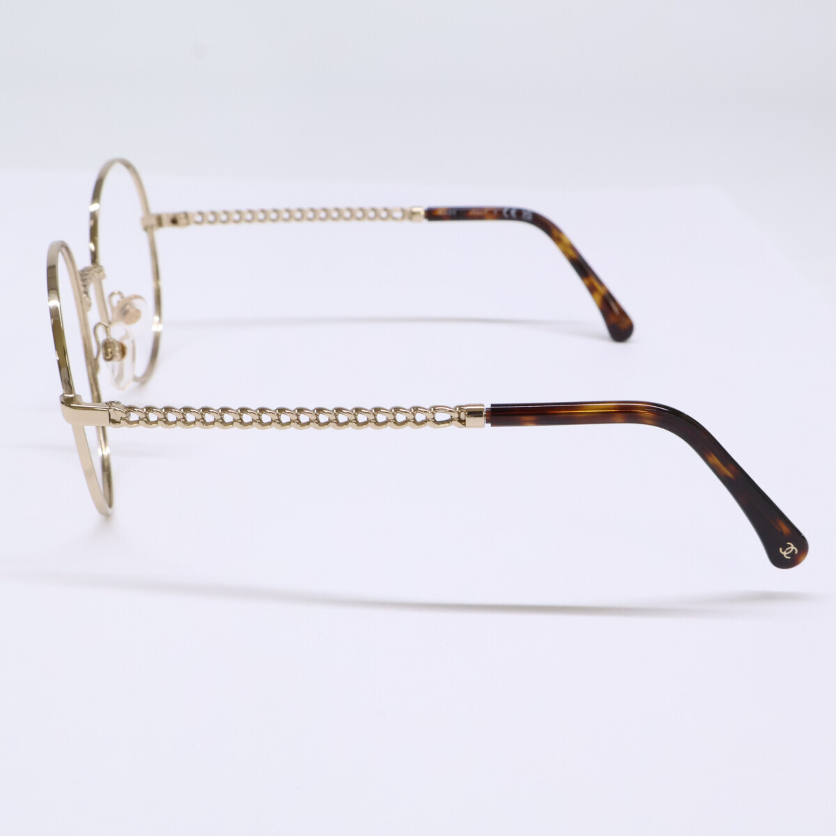【1円】CHANEL シャネル CH2186 レンズ無し チェーンストラップ付 ラウンドシェイプ メガネフレーム 眼鏡 51□21 135 c.395 ゴールド