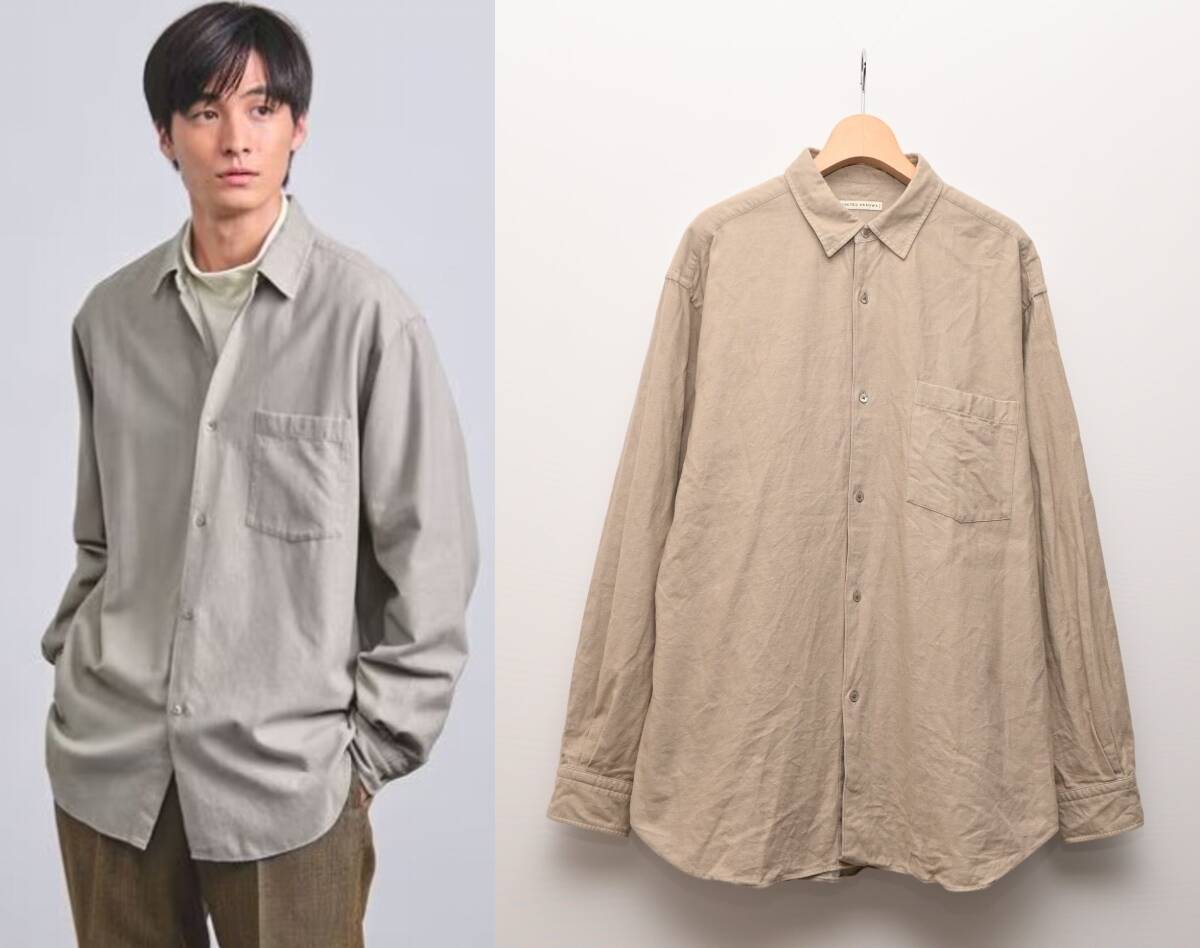 【メンズ L 定価1.9万円】UNITED ARROWS アローズ カリビアーナミルズ ブラッシュド レギュラーカラーシャツ ベージュ 長袖 DA5389