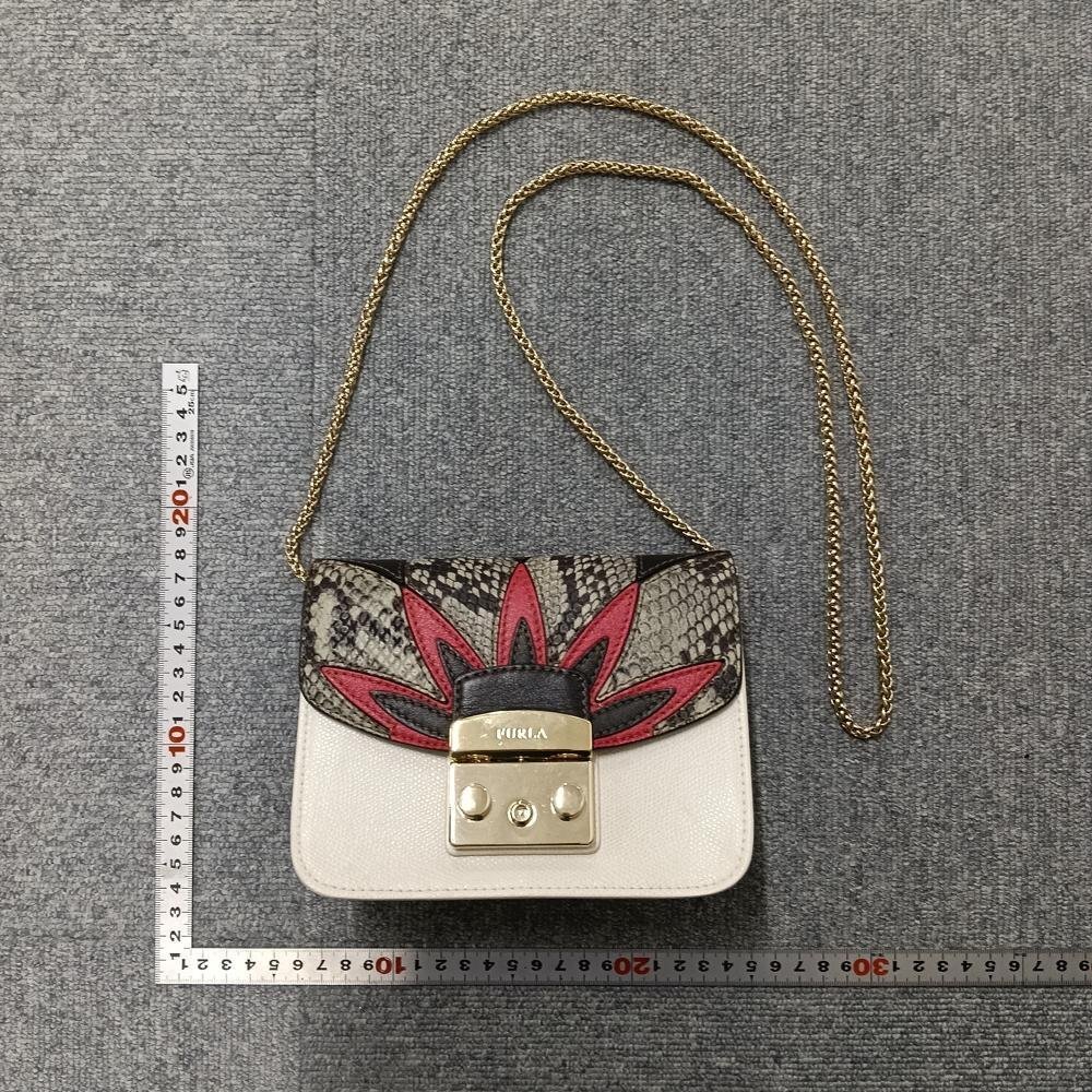状態備考 : FURLAの上品な白パイソン柄チェーンショルダーバッグ。洗練されたデザインが、普段使いからパーティまで幅広いシーンで活躍します。目立つ傷や汚れもなく、美しい状態を保っています。あなたのコーディネートをワンランクアップさせる逸品です。