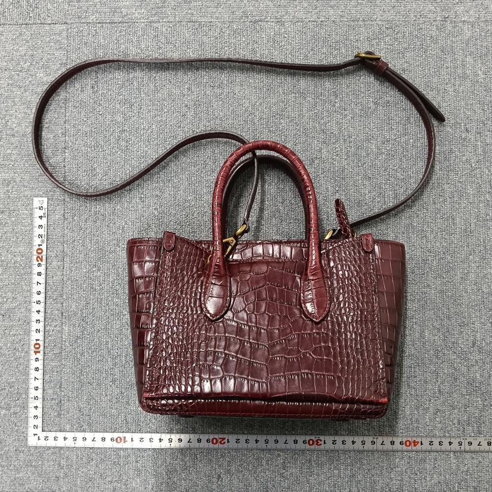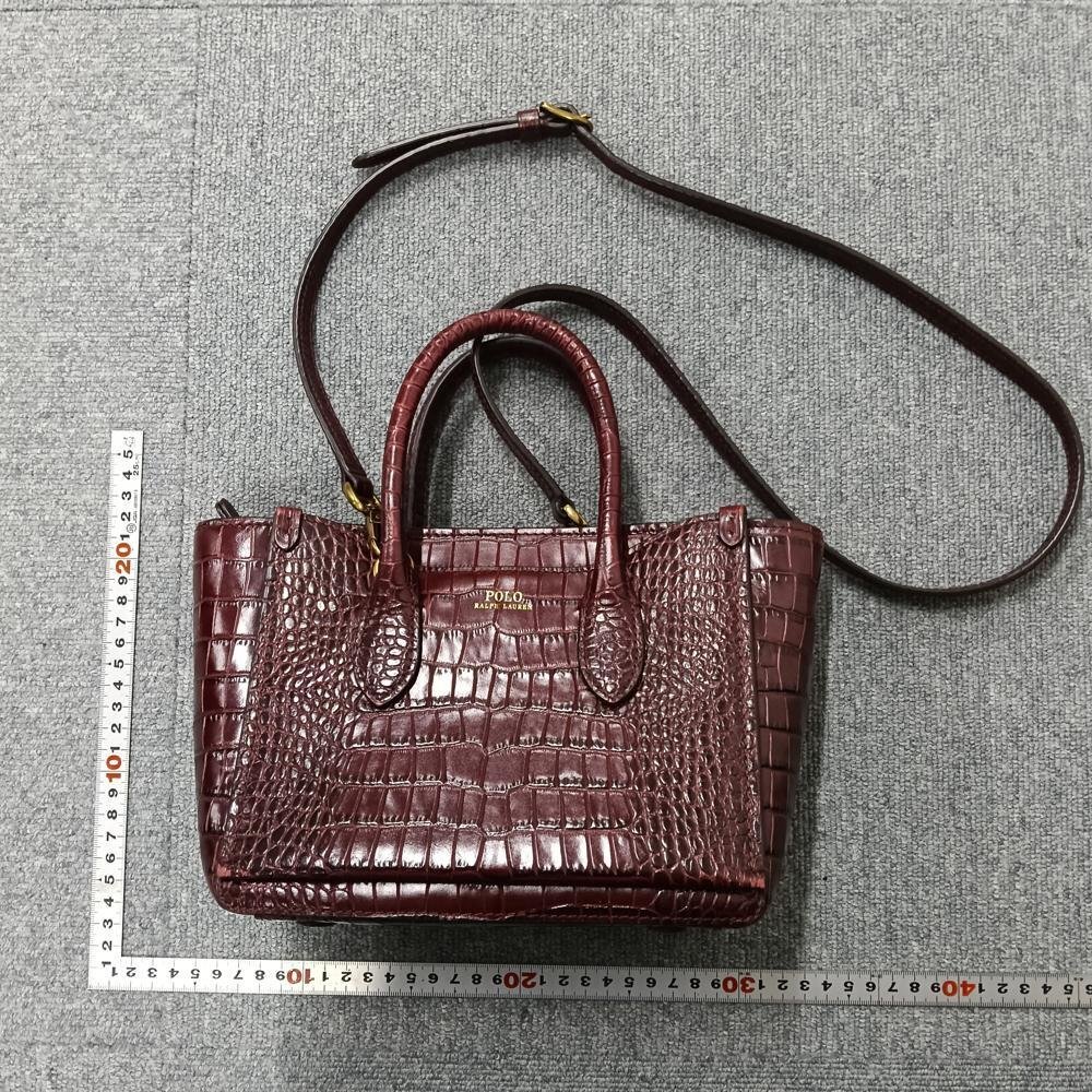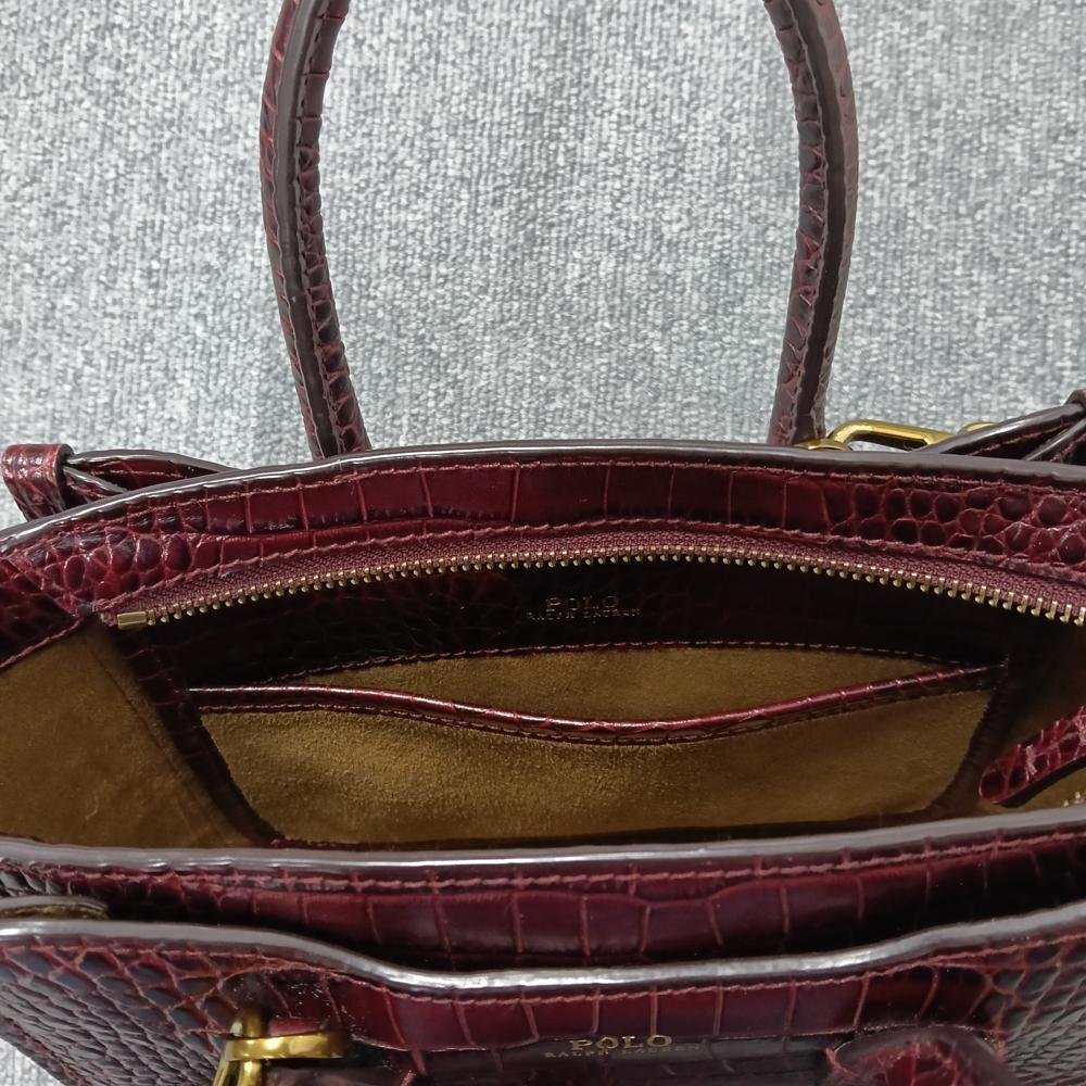 状態備考 : Polo Ralph Laurenのワインレッド クロコ型押し2WAYバッグ。上品な色合いと型押しデザインが装いをエレガントに演出します。ハンドバッグ、ショルダーバッグとして多様なシーンで活躍。目立つ傷や汚れなく状態良好です。大人の魅力引き立つ逸品をぜひ。