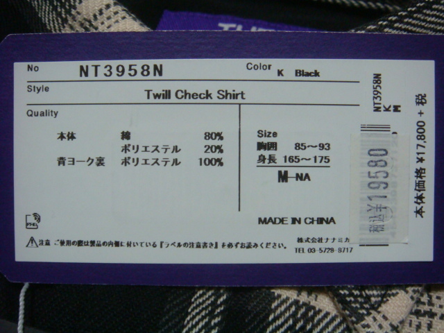 THE NORTH FACE PURPLE LABEL 「Twill Check Shirt」 ブラック M 新品 ザ・ノース・フェイス・パープルレーベル nanamica ナナミカ