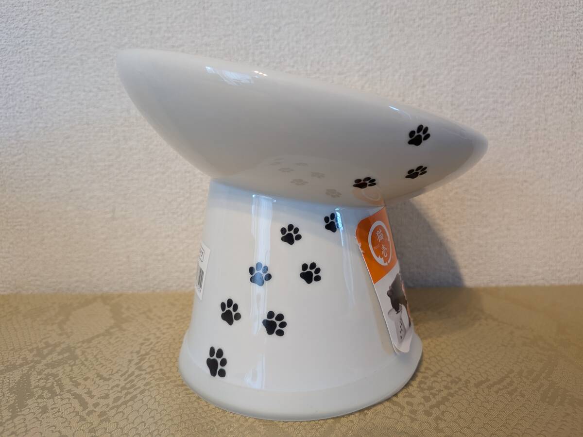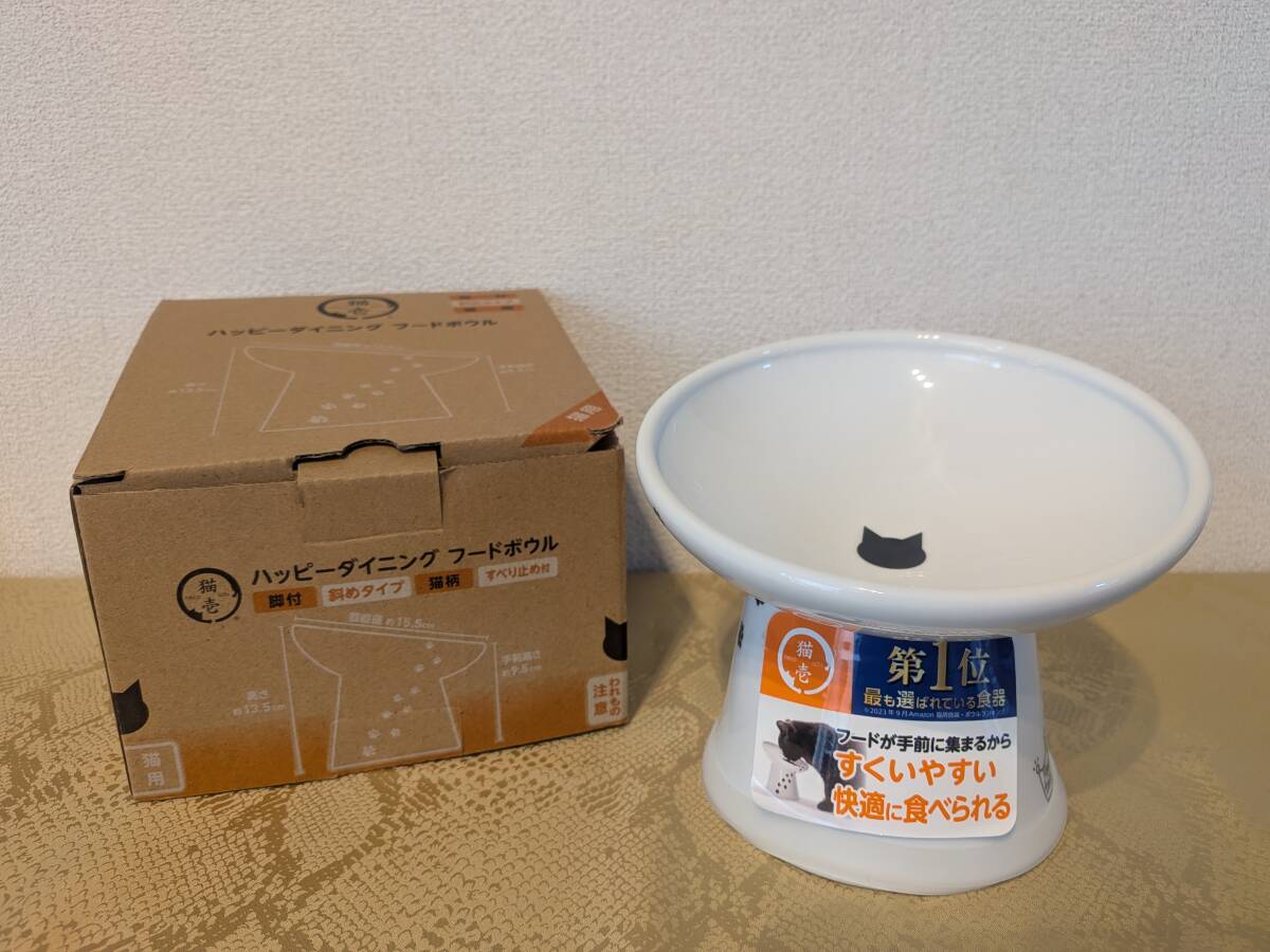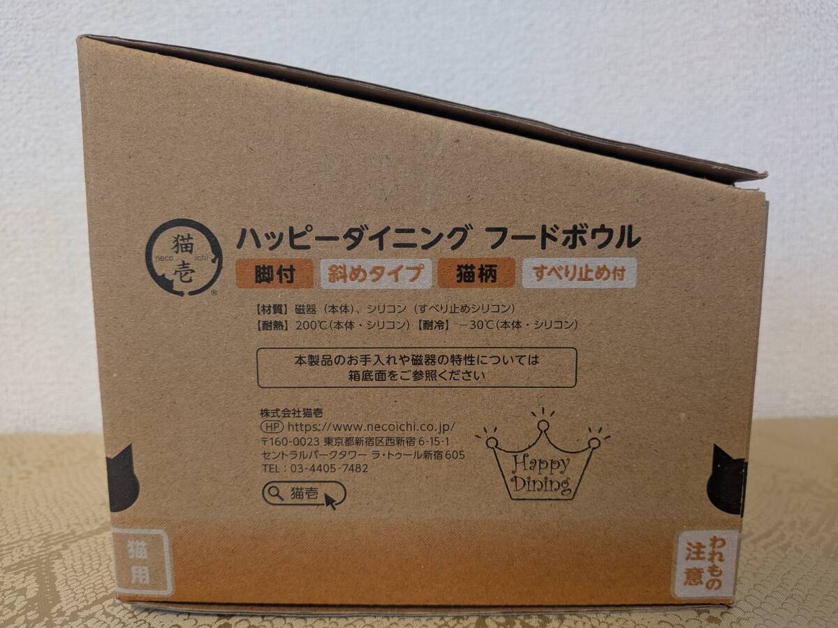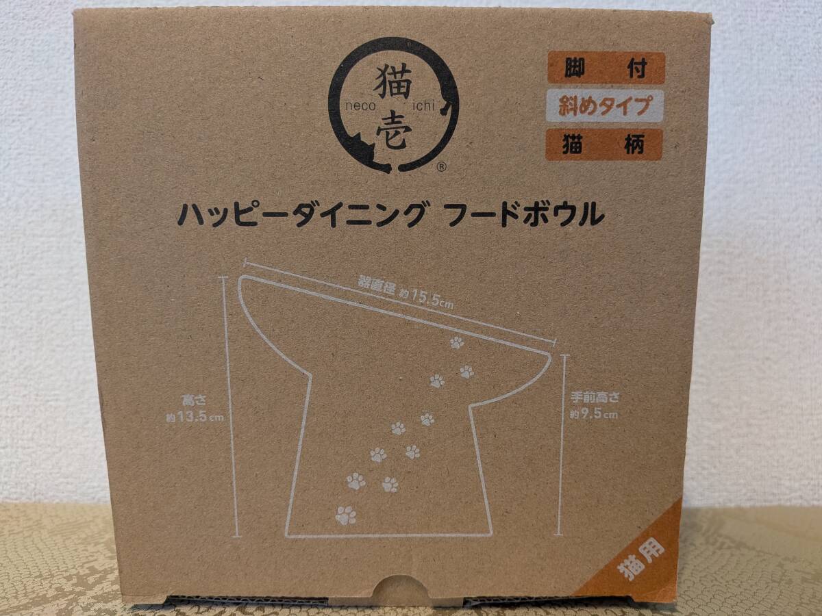 猫壱 ハッピーダイニング フードボウル 新品 脚付 斜めタイプ 猫柄 すべり止め付き