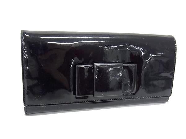 miumiu ミュウミュウ パテントレザー リボン 二つ折り 長財布 ウォレット 札入れ 小銭入れ カード入れ レディース ブラック系 DJ3878
