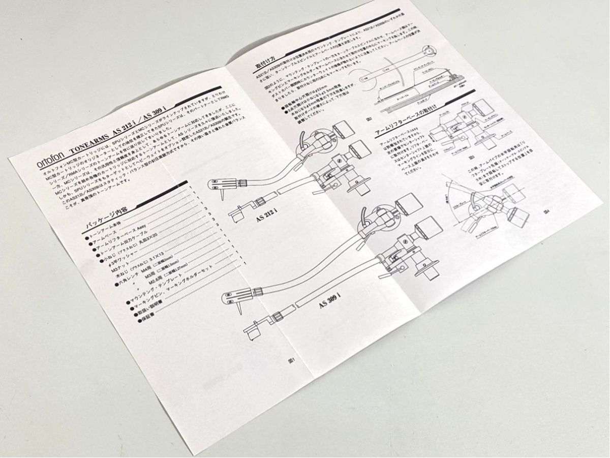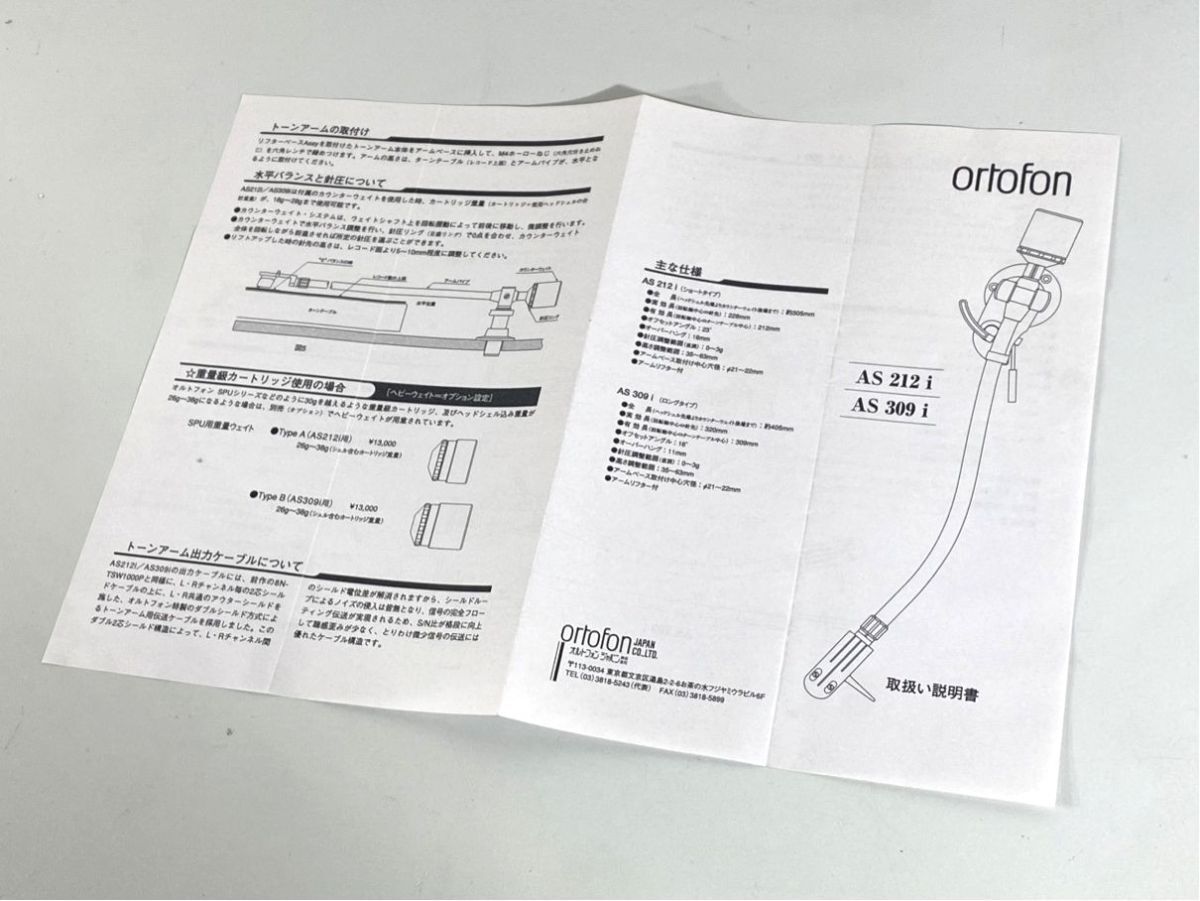 a1484 外観良好 ortofon オルトフォン AS212i AS-212i AS309i AS-309i トーンアーム 用 取扱説明書 原本 マニュアル
