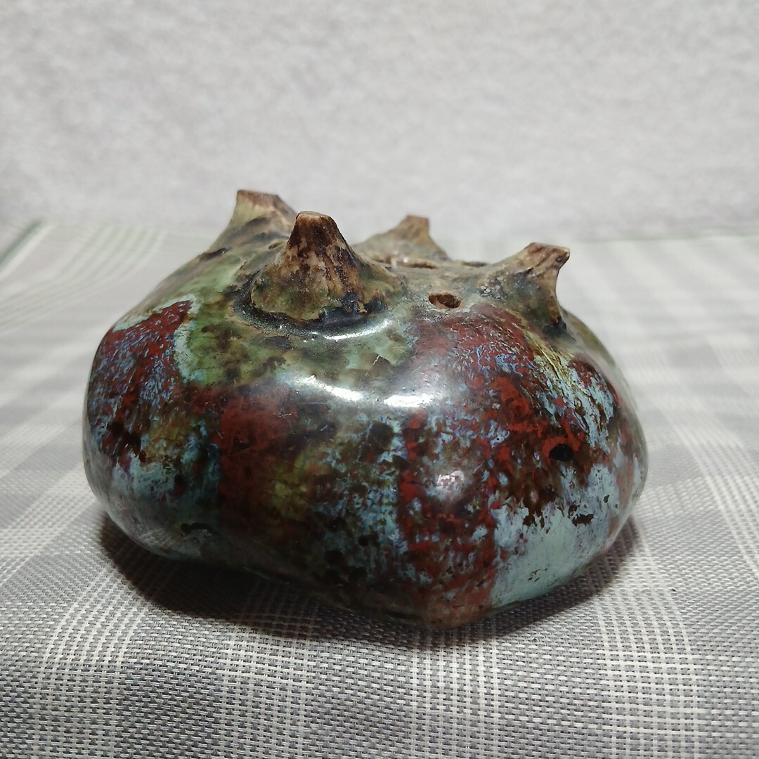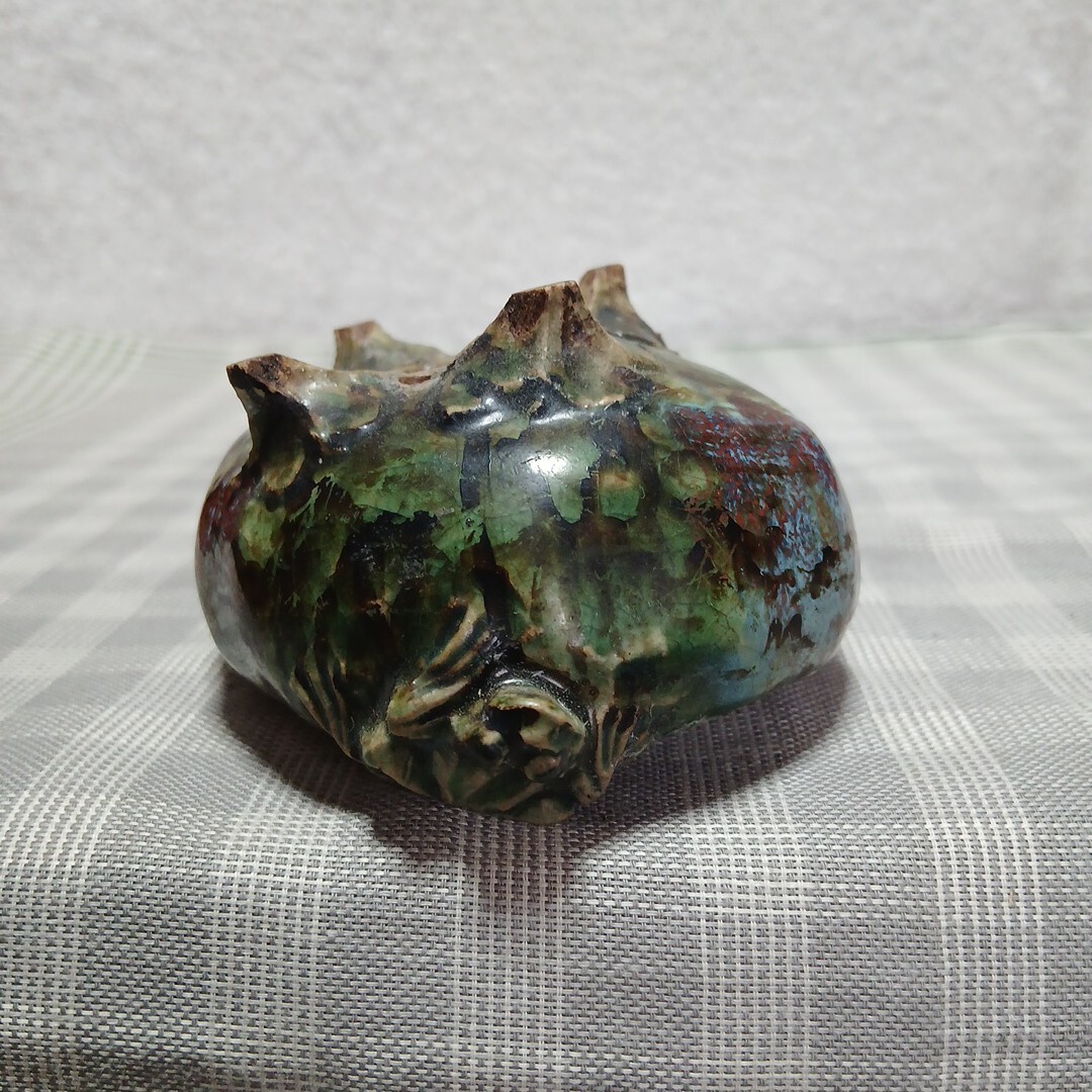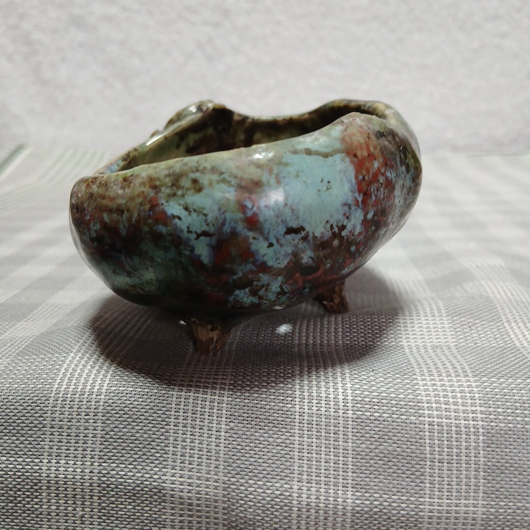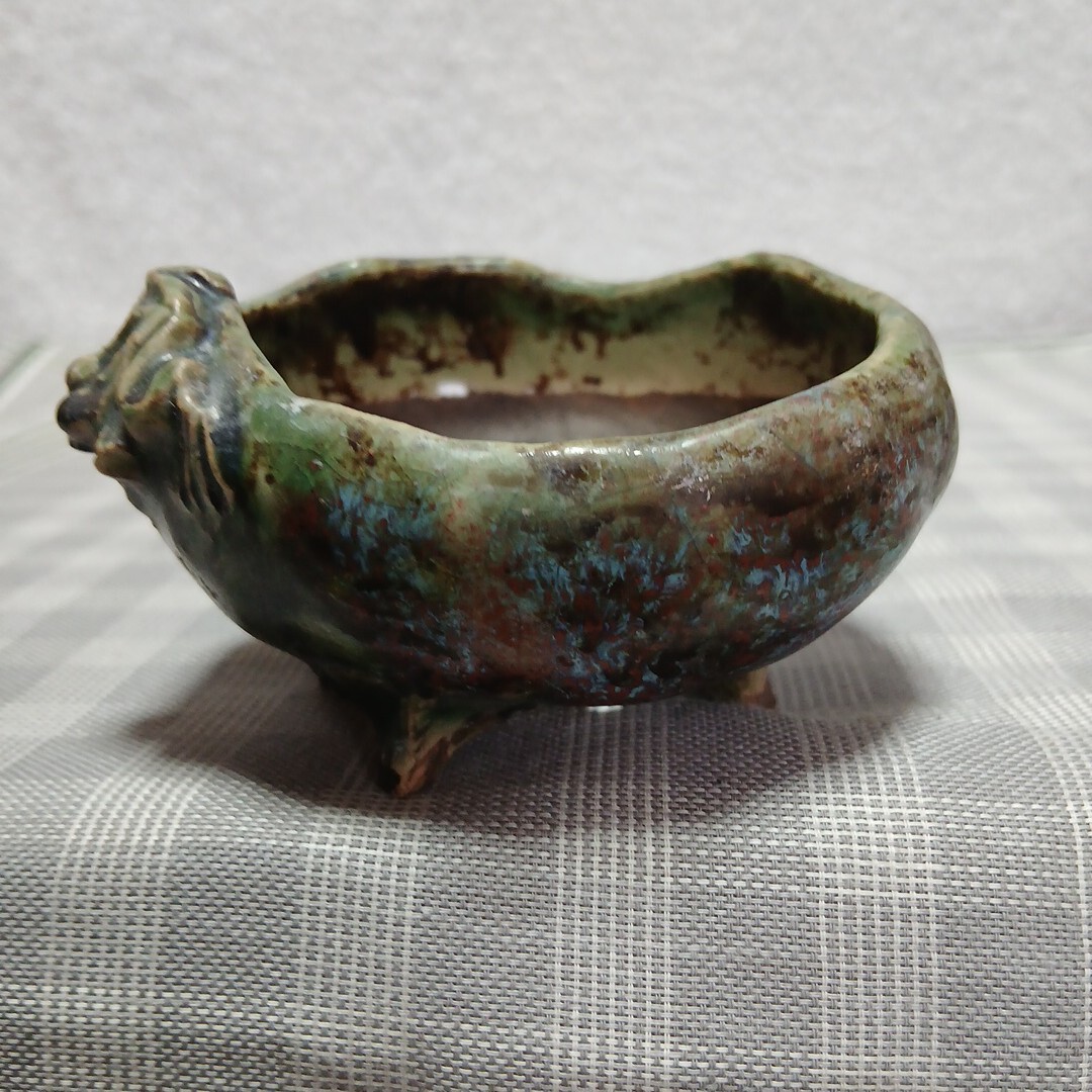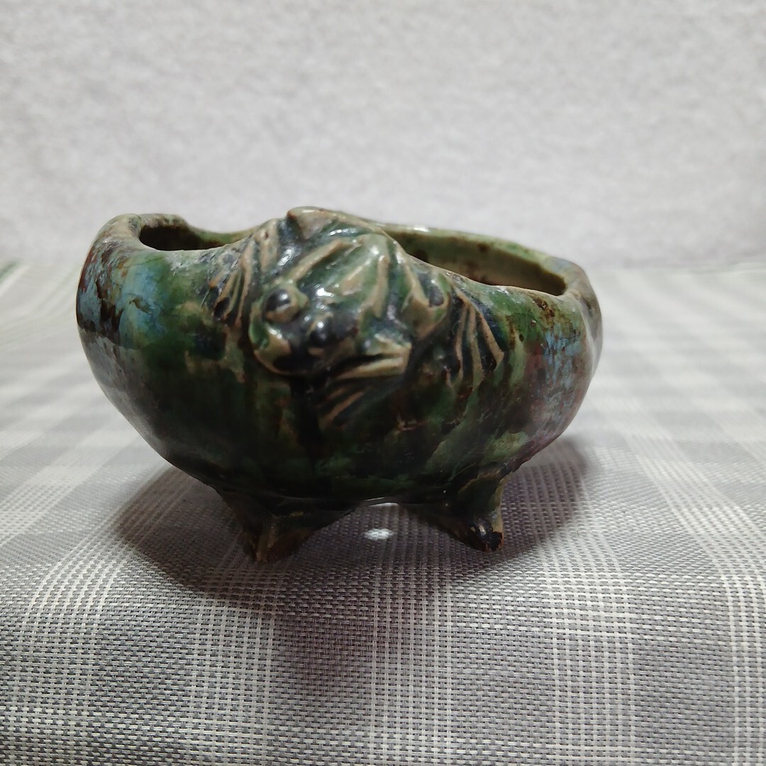 古本正志さんの正志落款のカエル付き楕円鉢です。寸法は内径で左右6.5cm奥行き5.9cm高さ3.4cm~4.5cm.(多少の誤差はお許しください)経年の使用による水垢汚れホコリ当があります。詳しくは写真を参考に御判断してください。発送はゆうパックおてがるばん60,サイズになります
