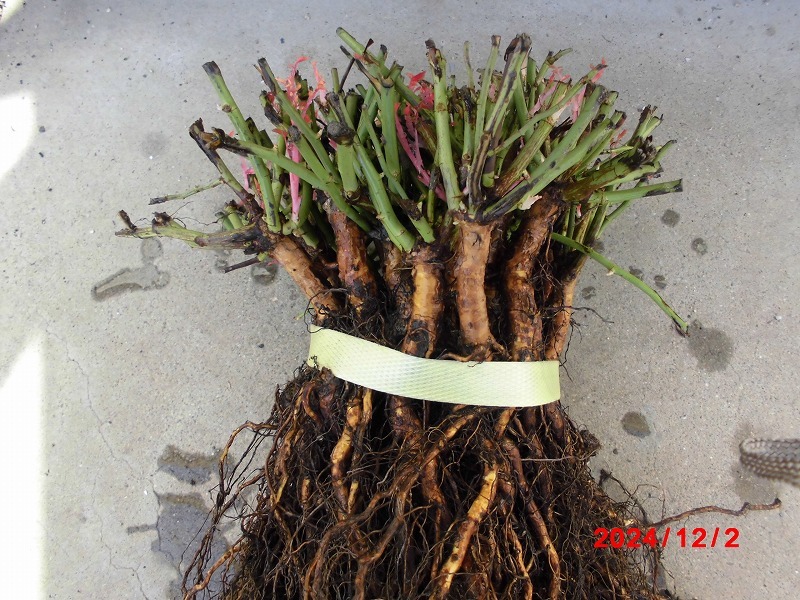 | 商品説明 | バラ台木の20本セットの出品です。 ①洗っていますが、根に土が残っています。根は切り詰めていません。 ②今回の出品の台木はバクテローズ2回処理・バスアミド土壌消毒済みです。 バラの接木にとってこの病気は避けては通れない問題です。 一度発病すると有効な対策はありません。折角の手作り苗が病気にかかり廃棄するのはつらいことです。 ヤマト宅急便での発送を予定しています。 全国1000円、ただし沖縄・北海道・離島は2000円です。 |