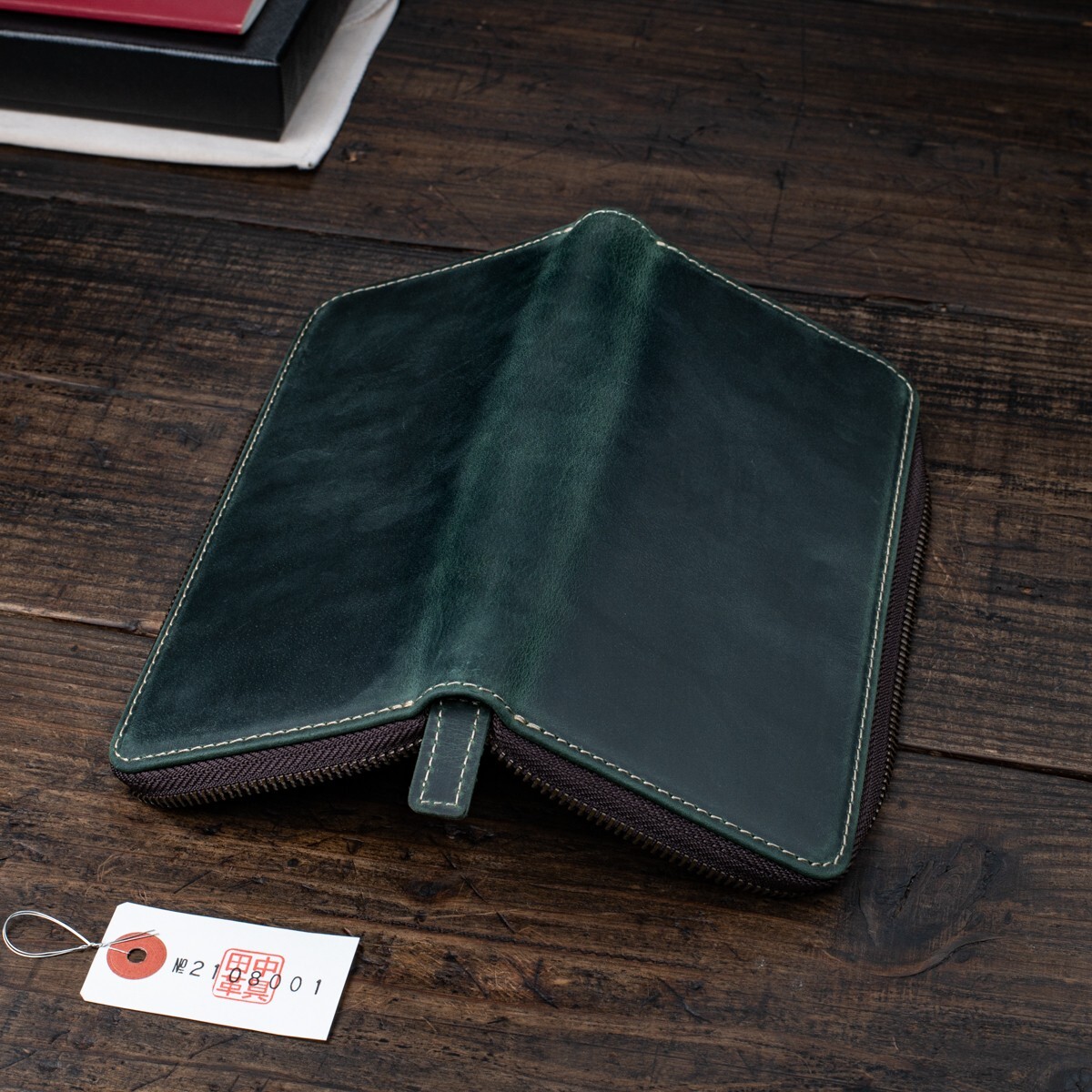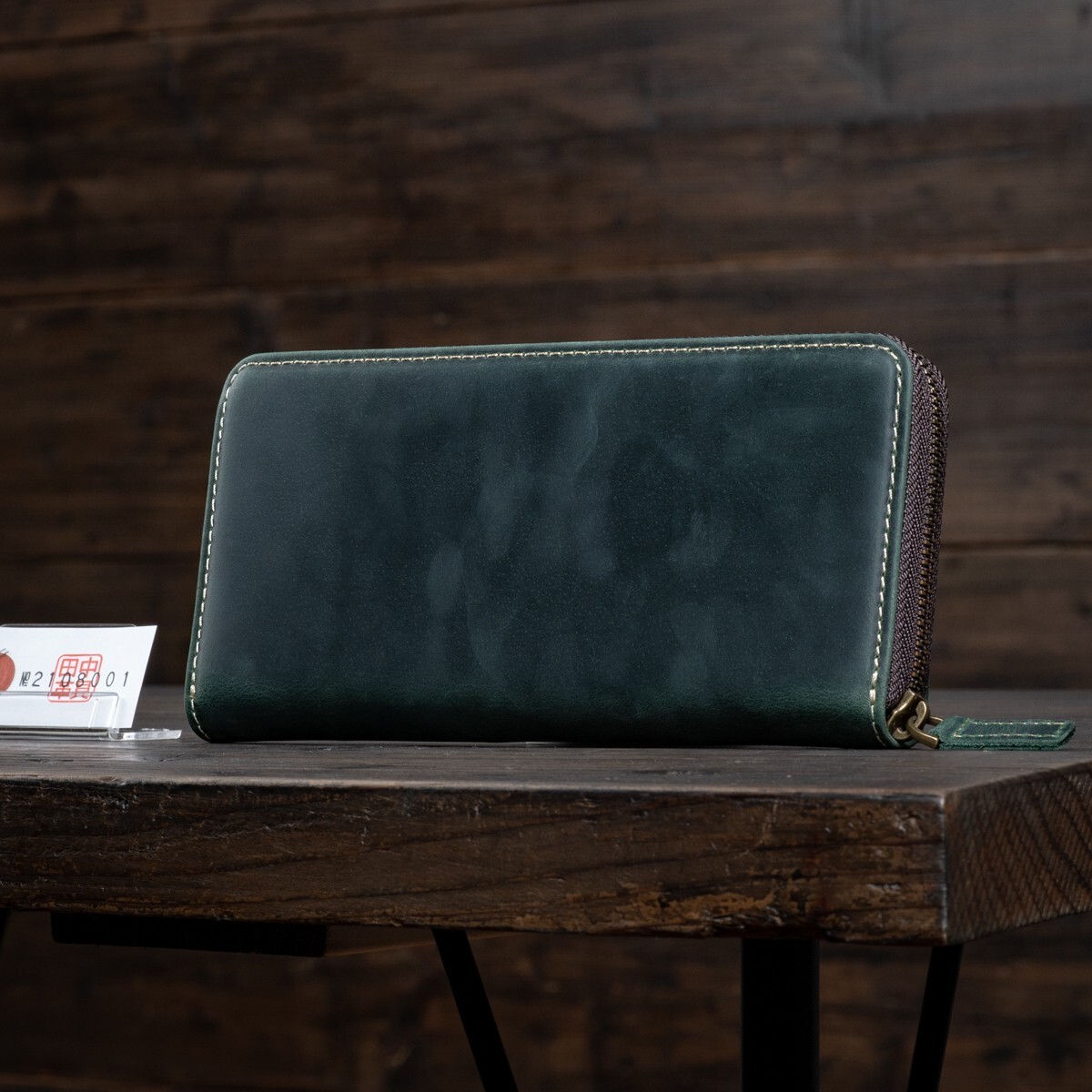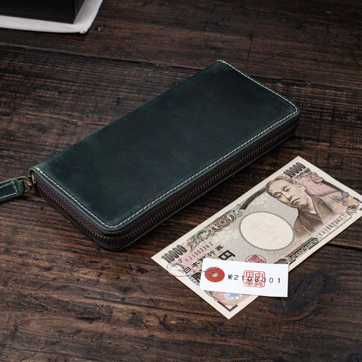 オイルヌバック【牛革】イタリアンレザー メンズ 本革 長財布 ラウンドファスナー 新品 未使用 送料無料 1円 緑 グリーン 田中革具