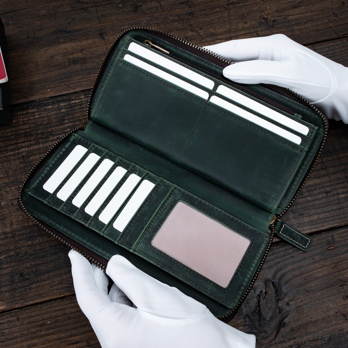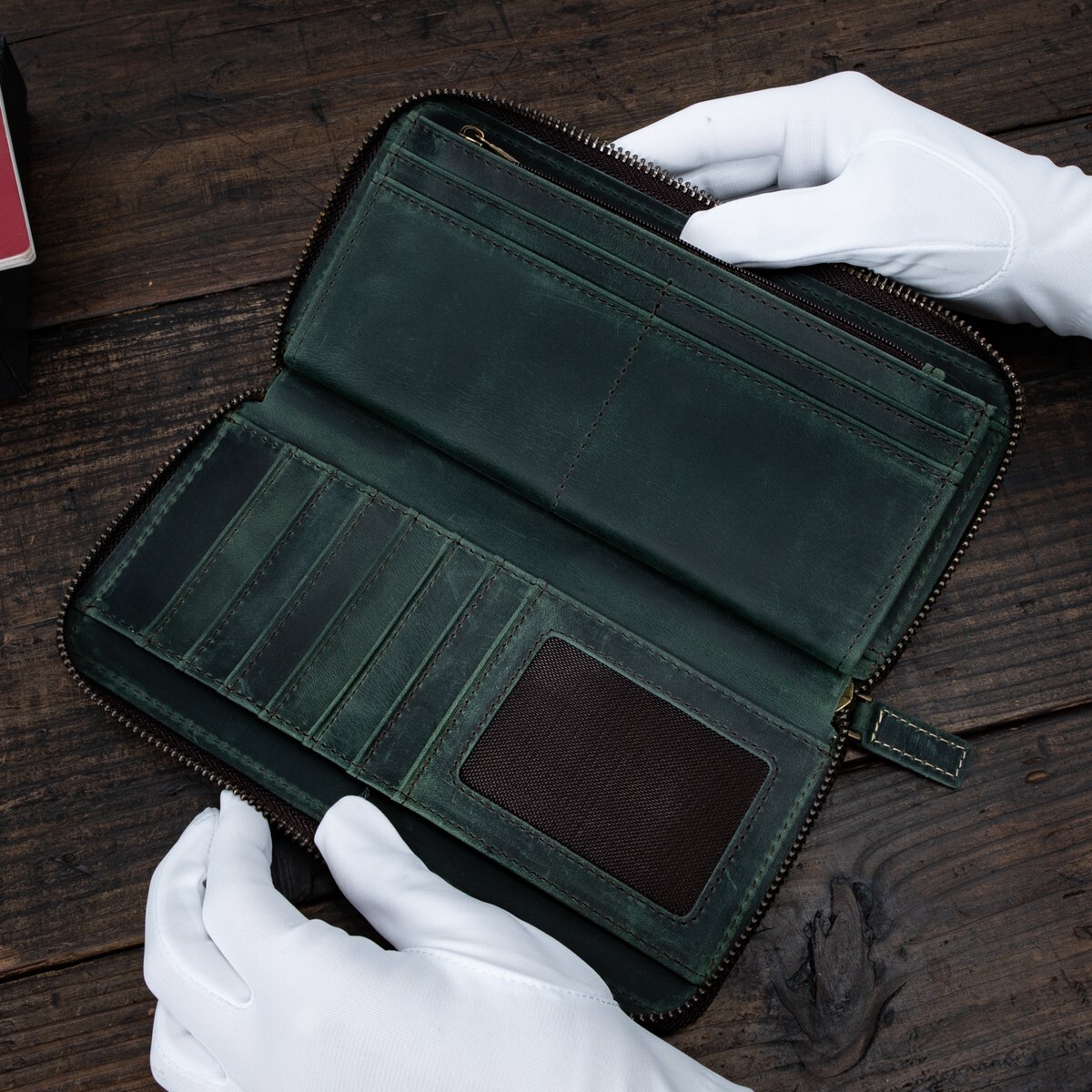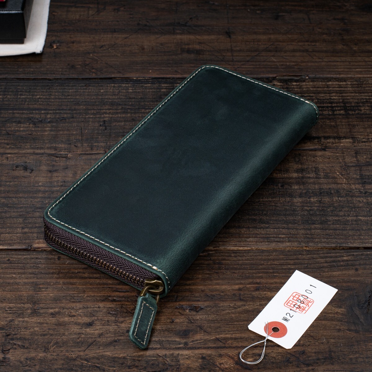 オイルヌバック【牛革】イタリアンレザー メンズ 本革 長財布 ラウンドファスナー 新品 未使用 送料無料 1円 緑 グリーン 田中革具